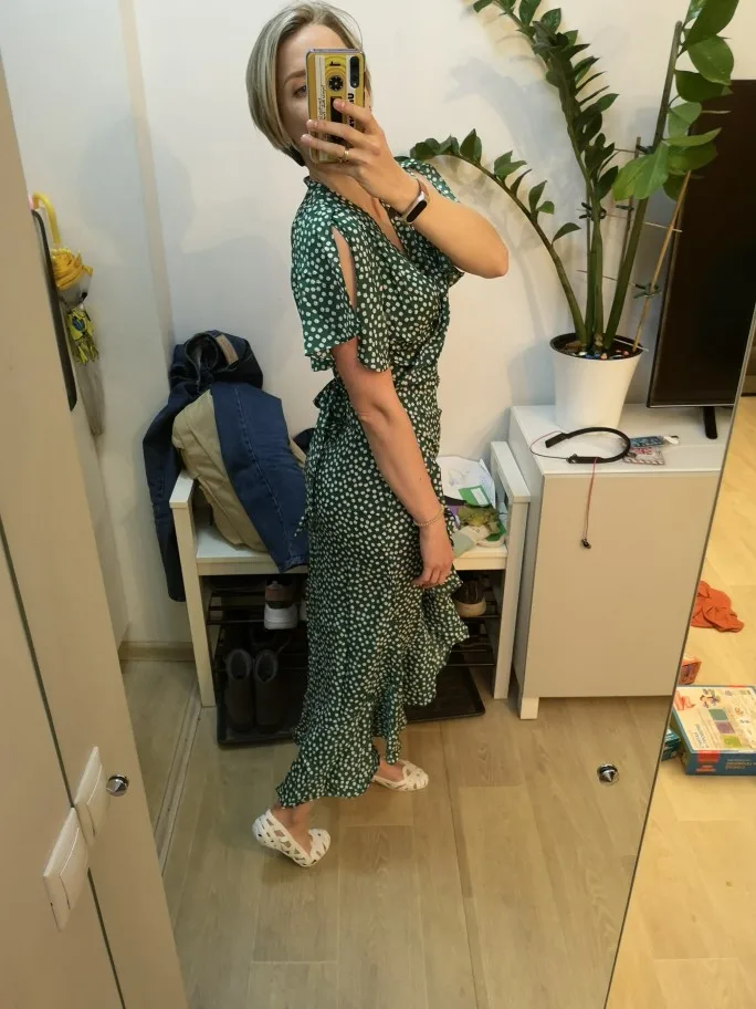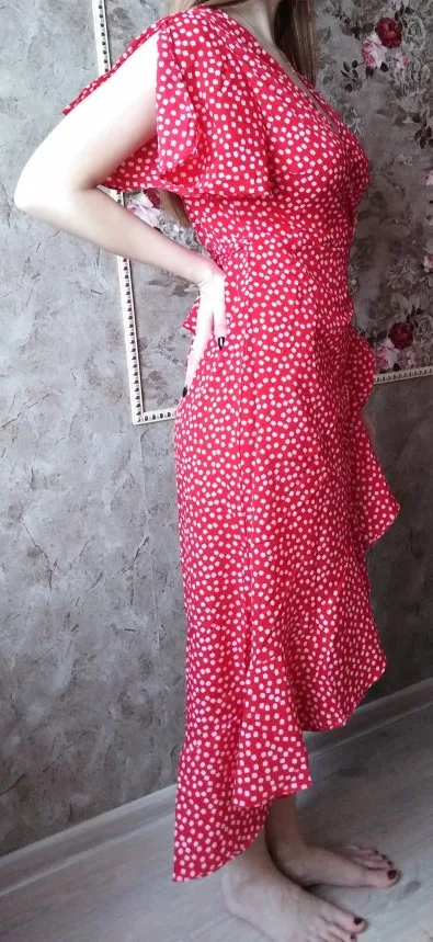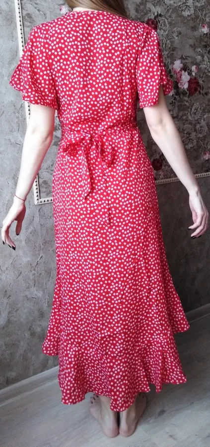 The dress is very cool. The fabric is pleasant. S excellent on parameters 92-70-94. My height is 170. the goods went about 3 weeks.