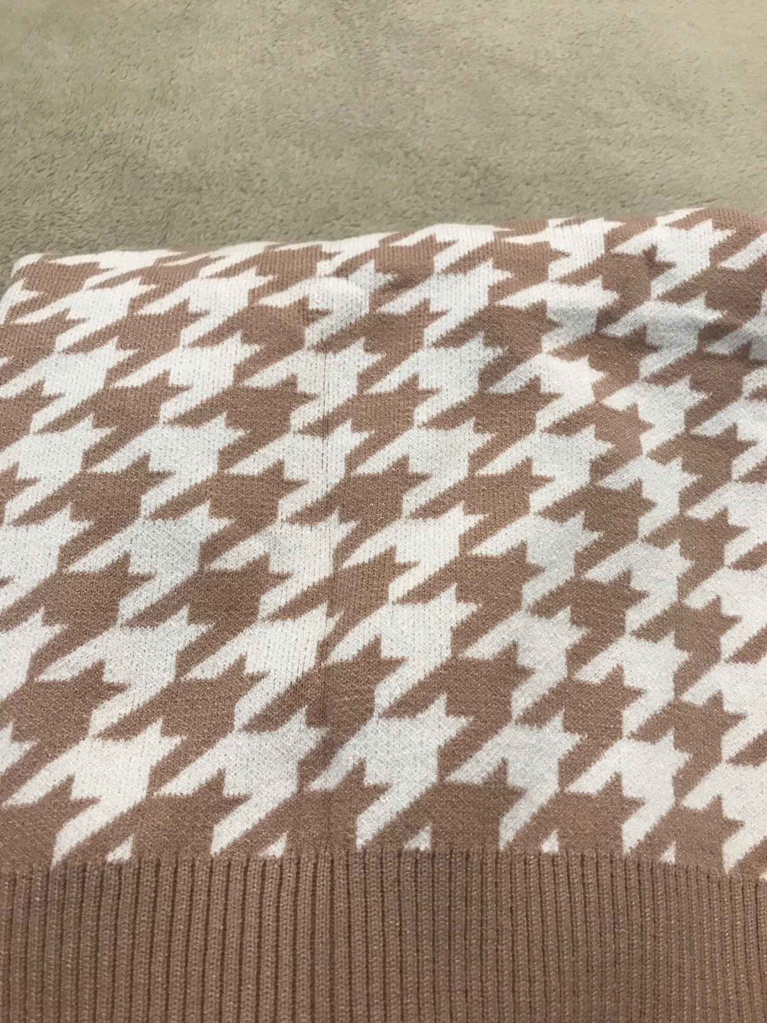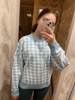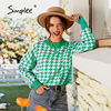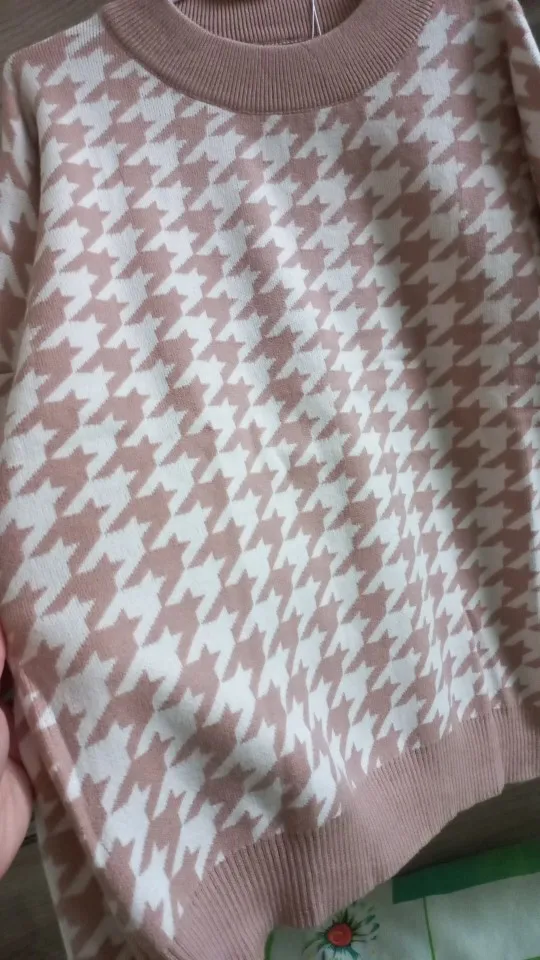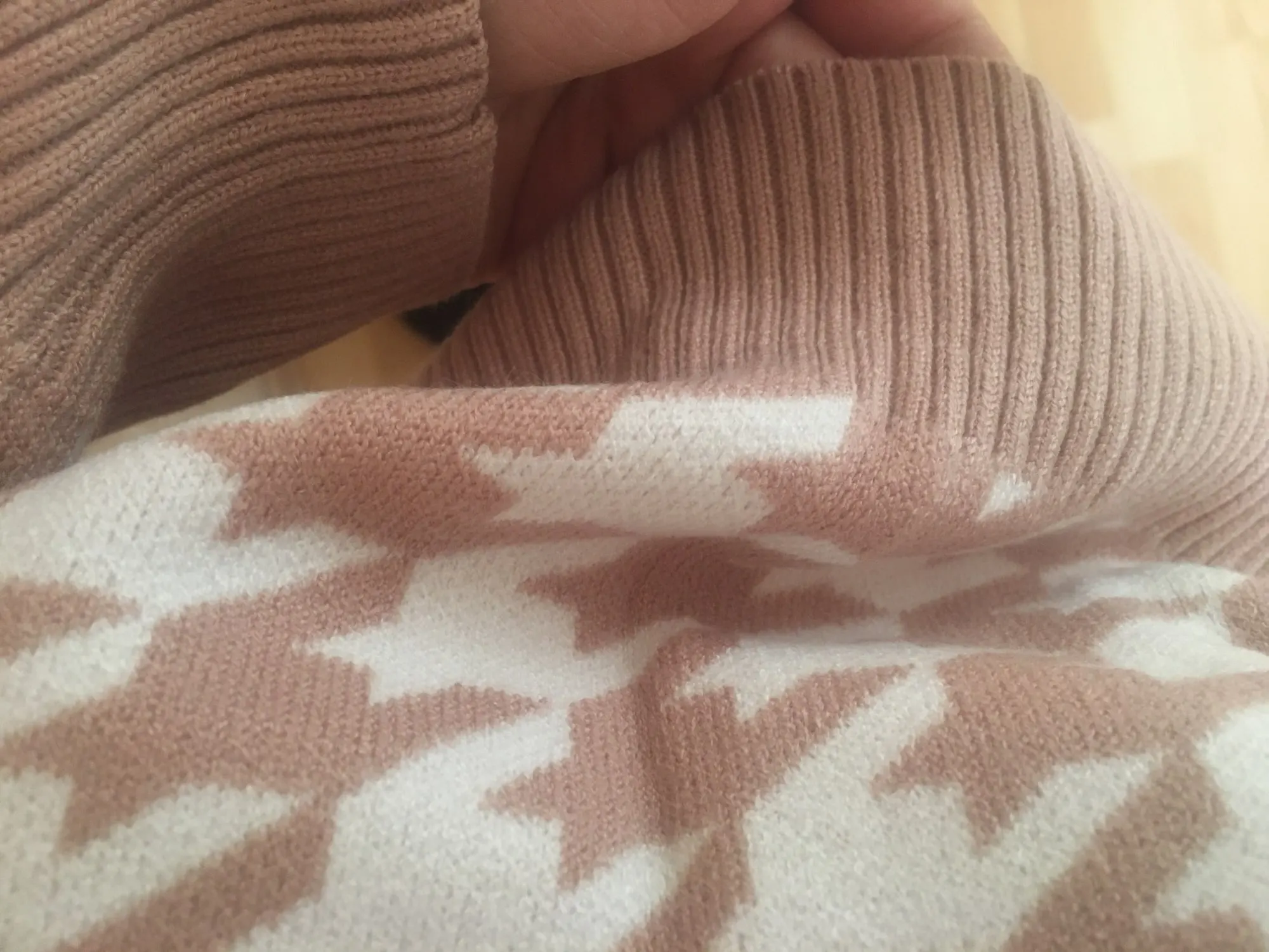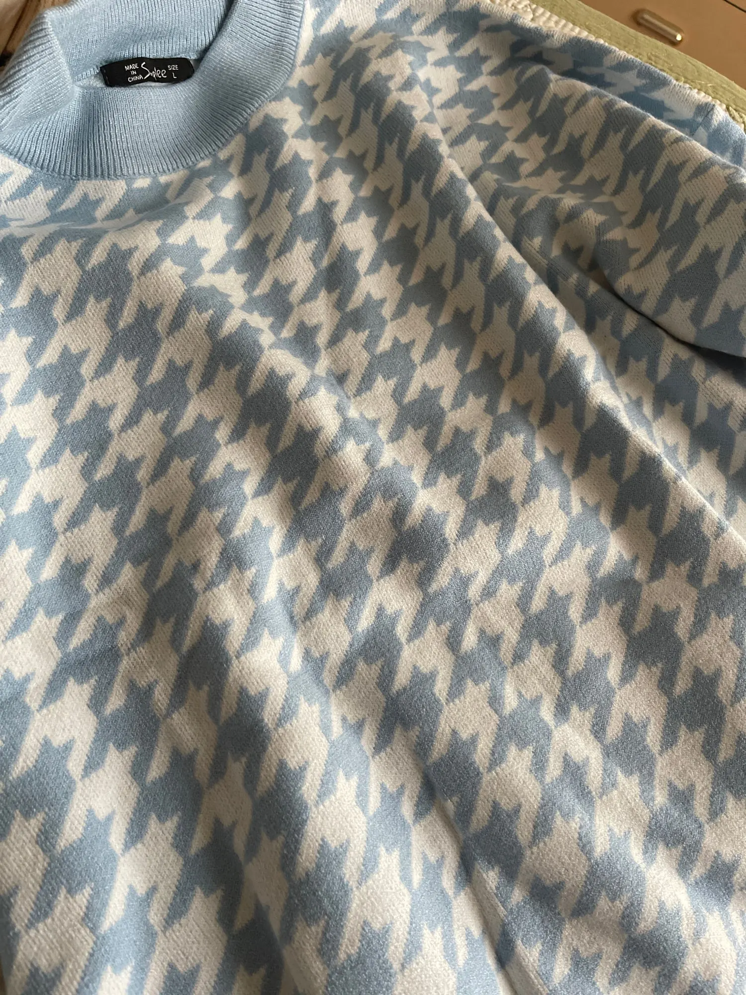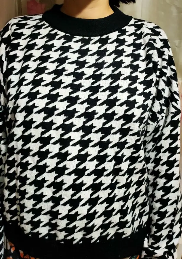 FREE SHIPPING Women Houndstooth Pattern Knitted Sweater OUT0909