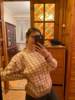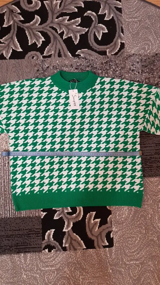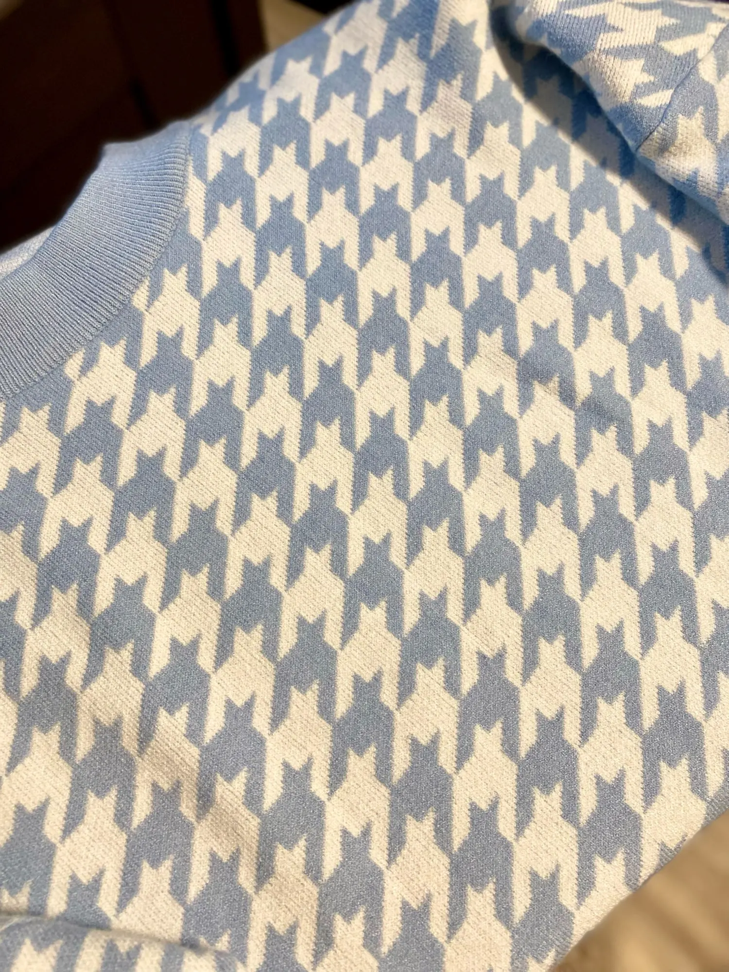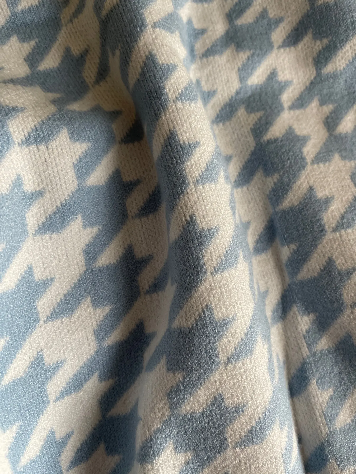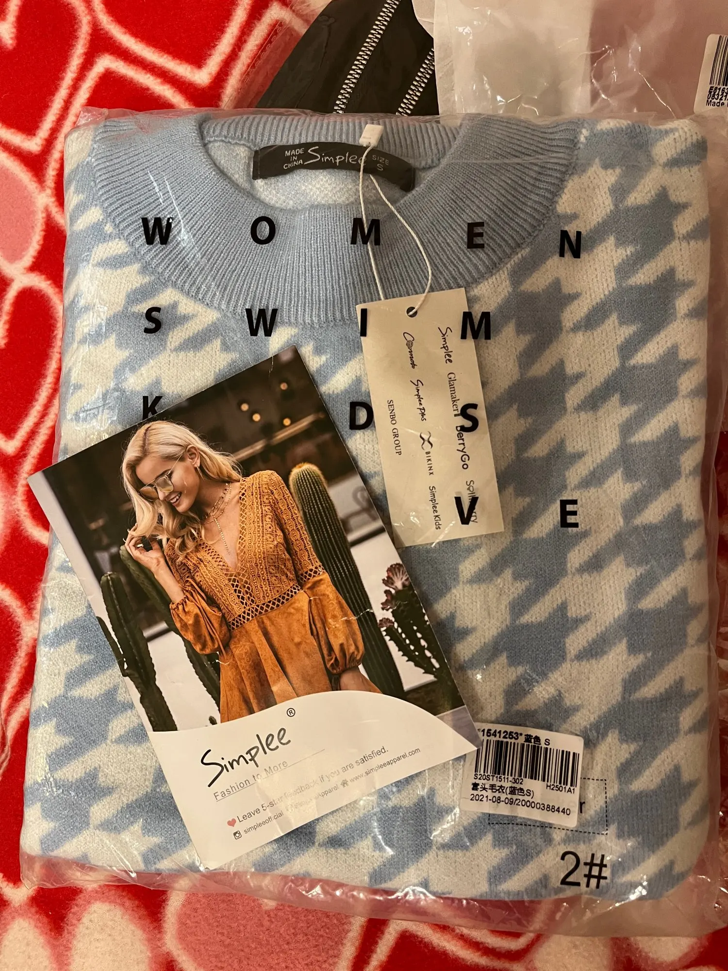 FREE SHIPPING Women Houndstooth Pattern Knitted Sweater OUT0909