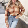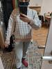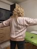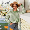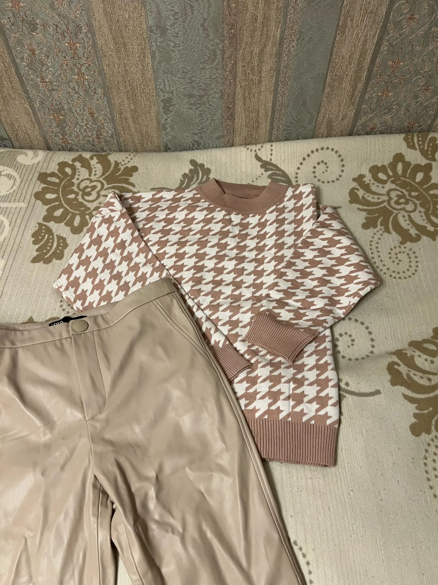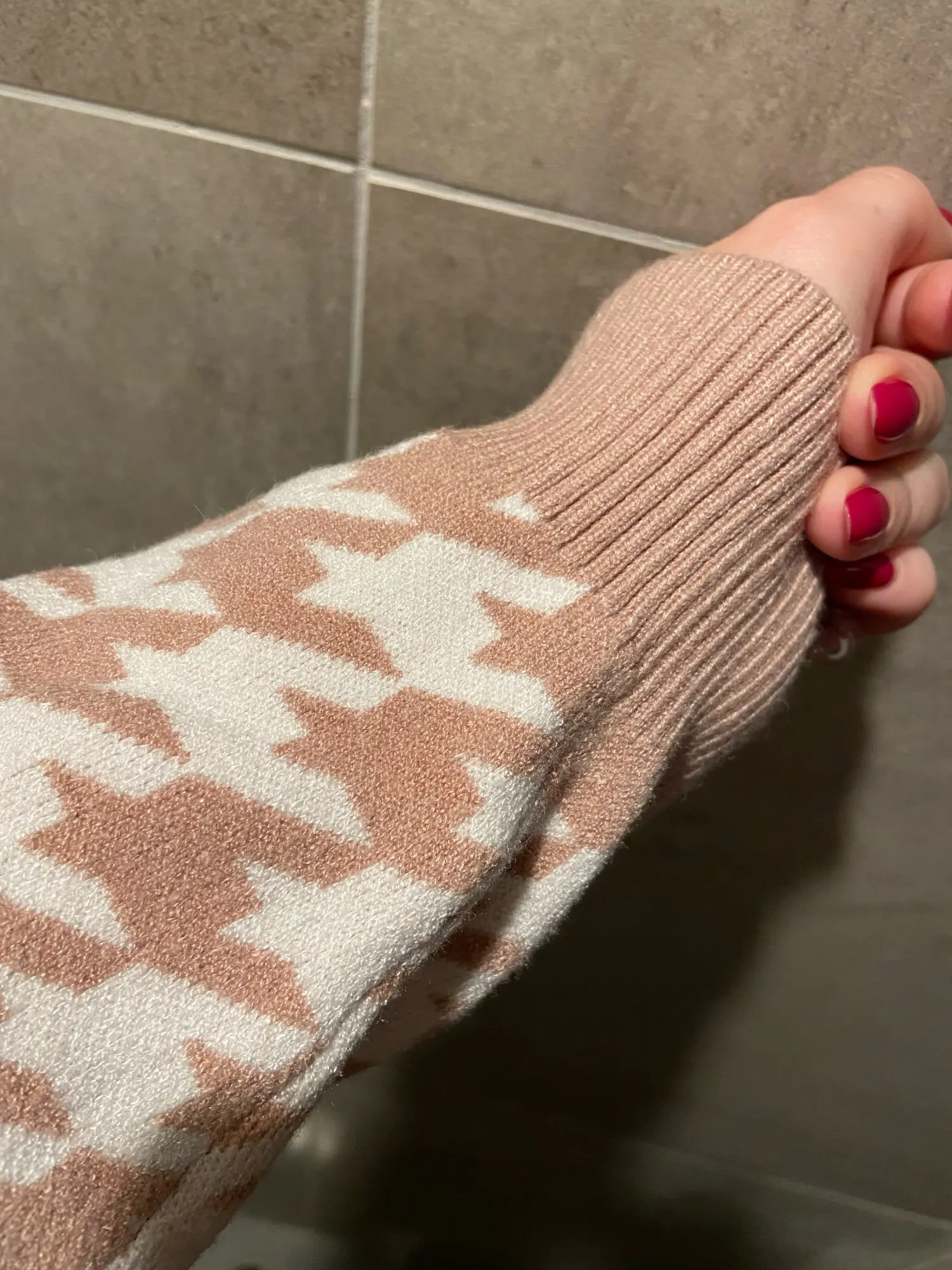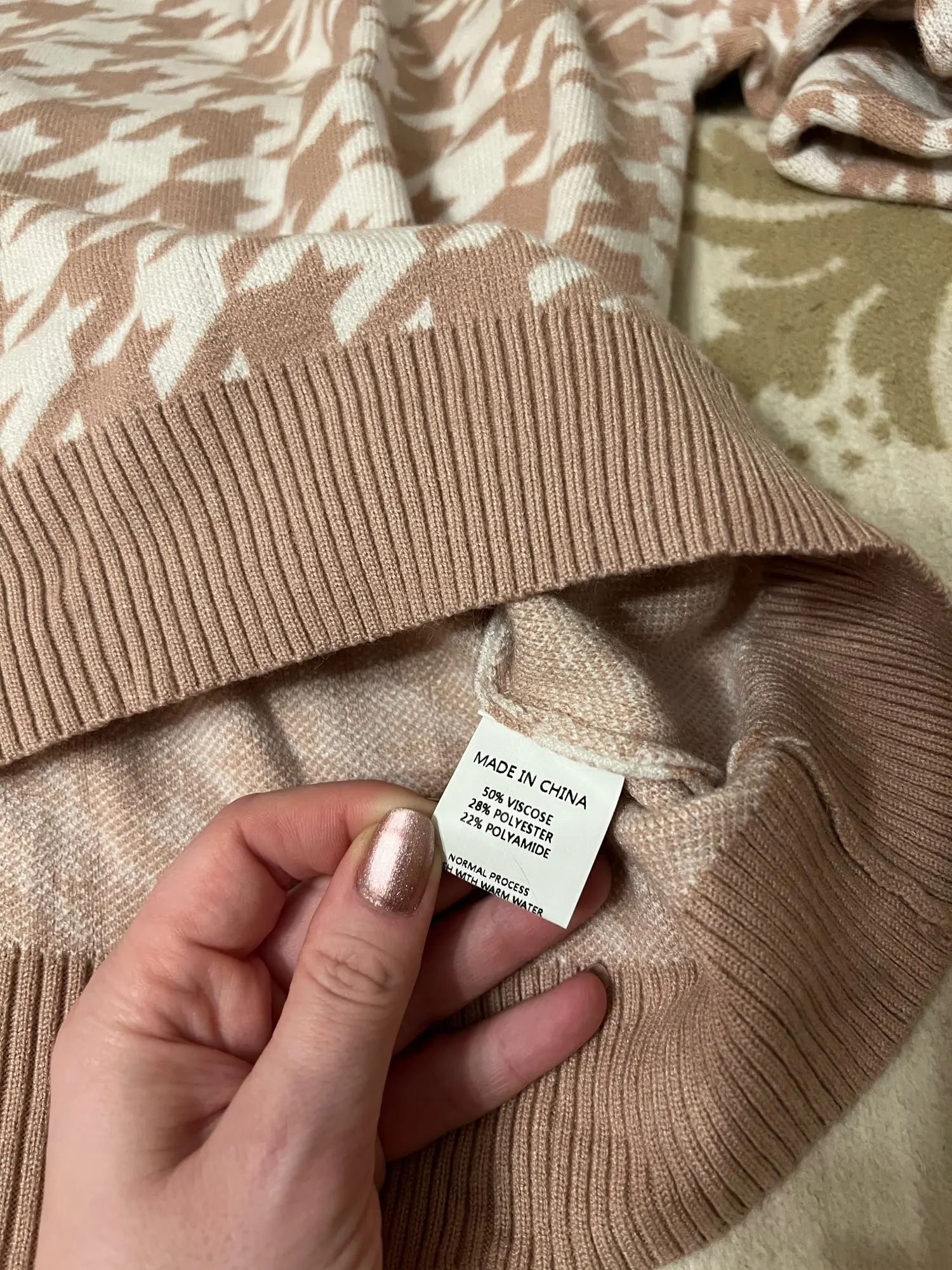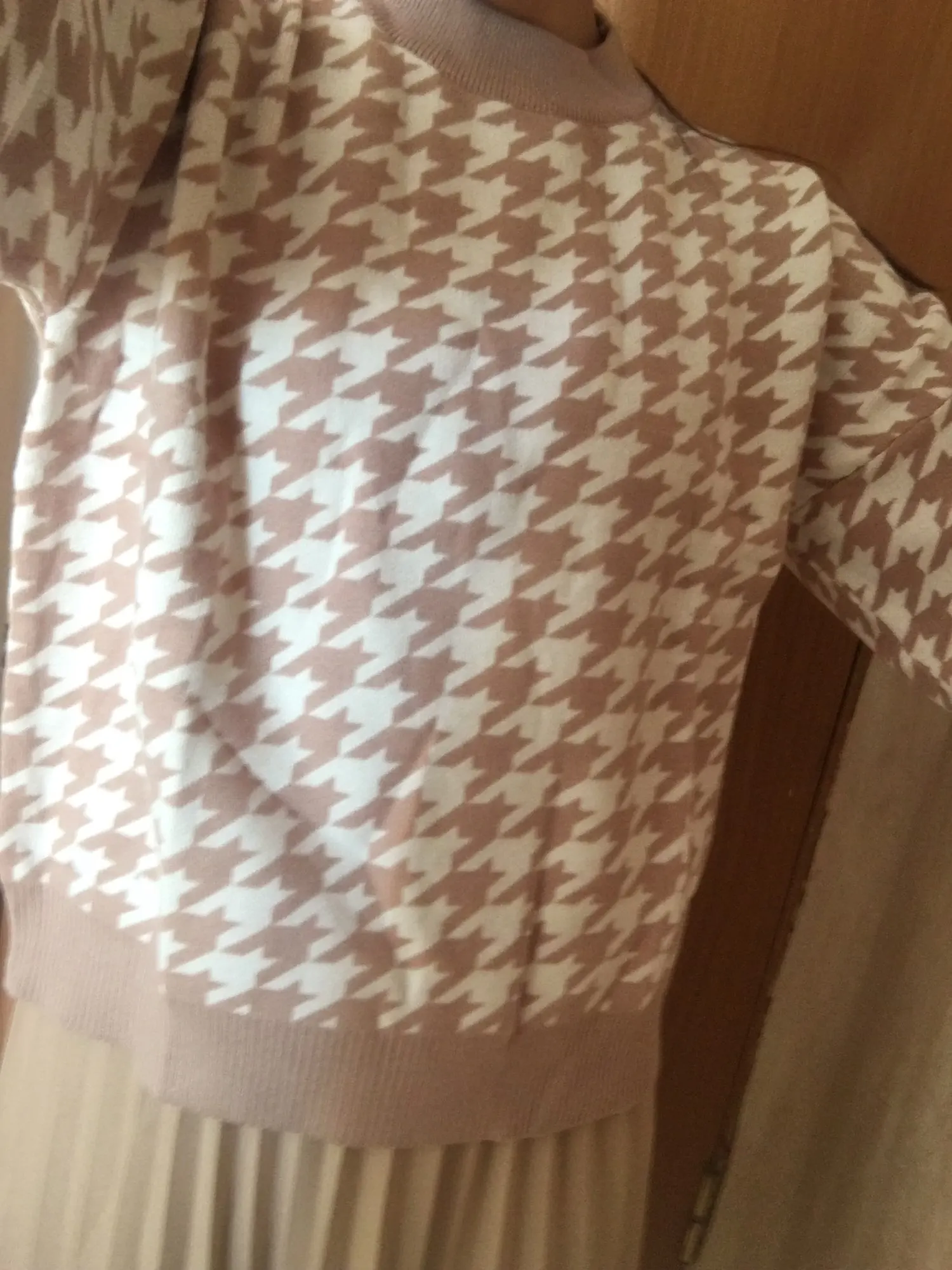 FREE SHIPPING Women Houndstooth Pattern Knitted Sweater OUT0909