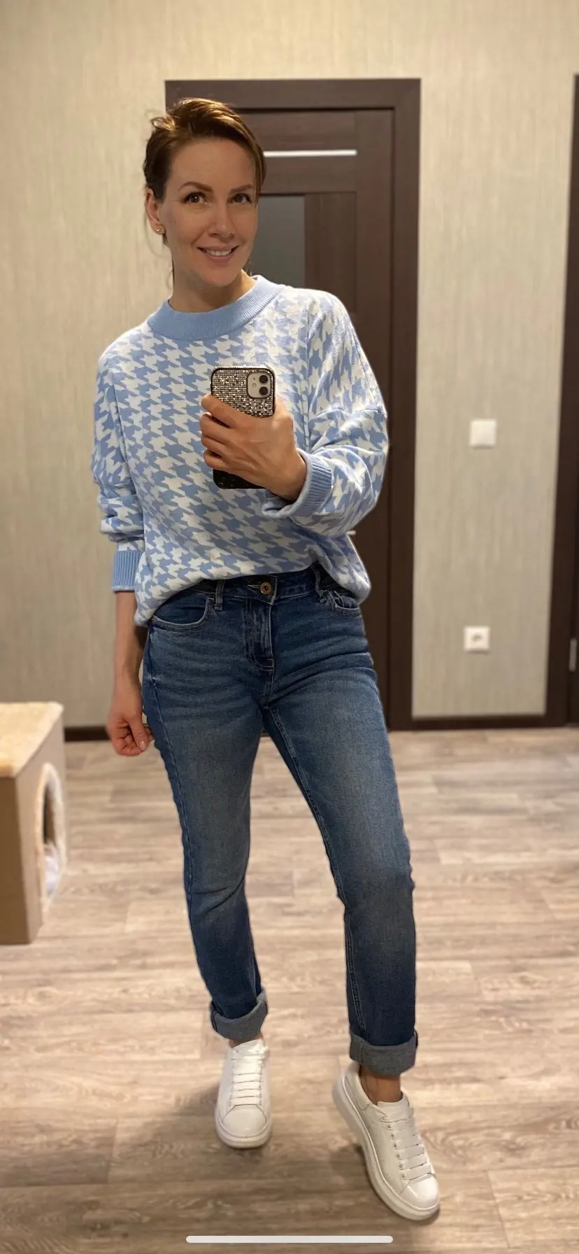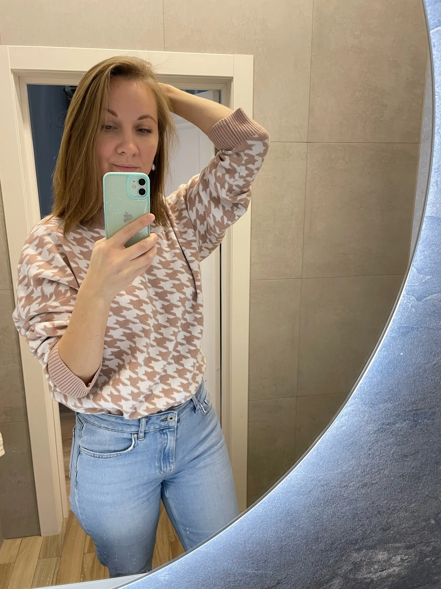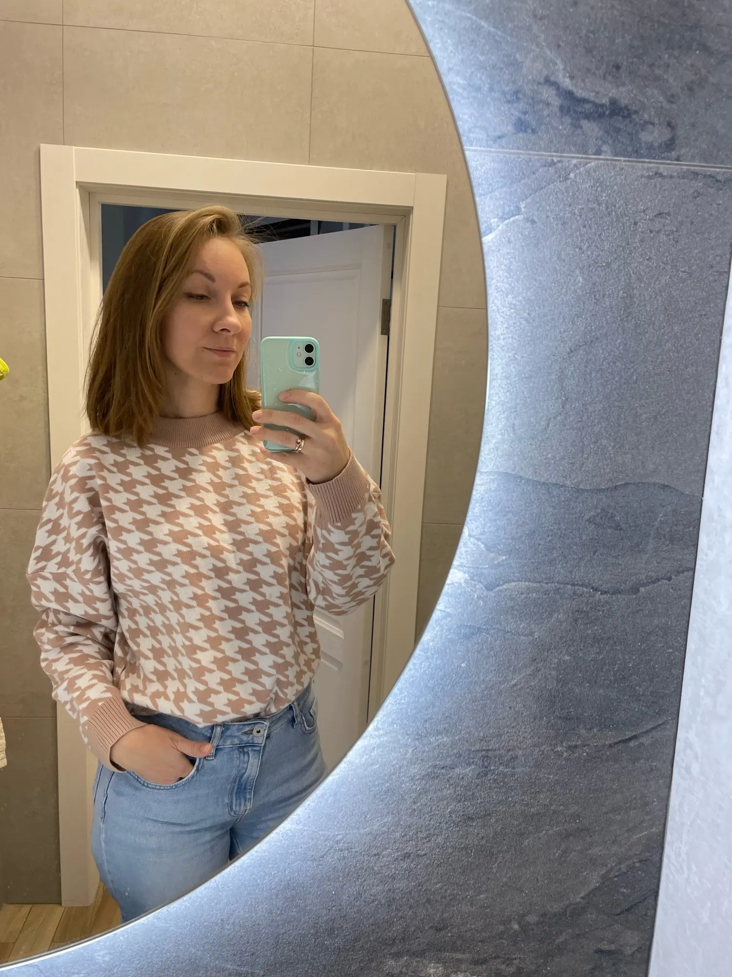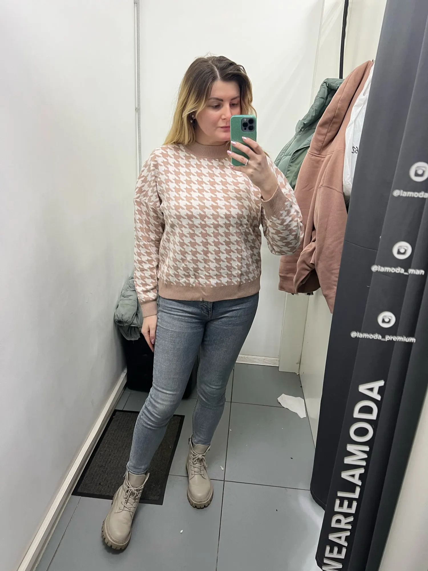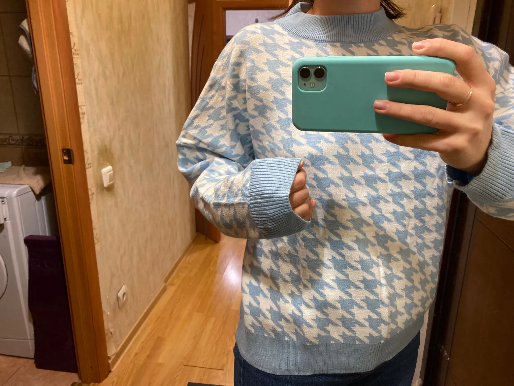 This jumper was in my basket for more than a year!!! Why didn't I buy it before ??? Very soft, cozy, stylish, modern print, while the coloring is gentle. On my parameters 89/63 sat down freely. With the store did not communicate, the order came very quickly, less than 2 weeks in Ulyanovsk.