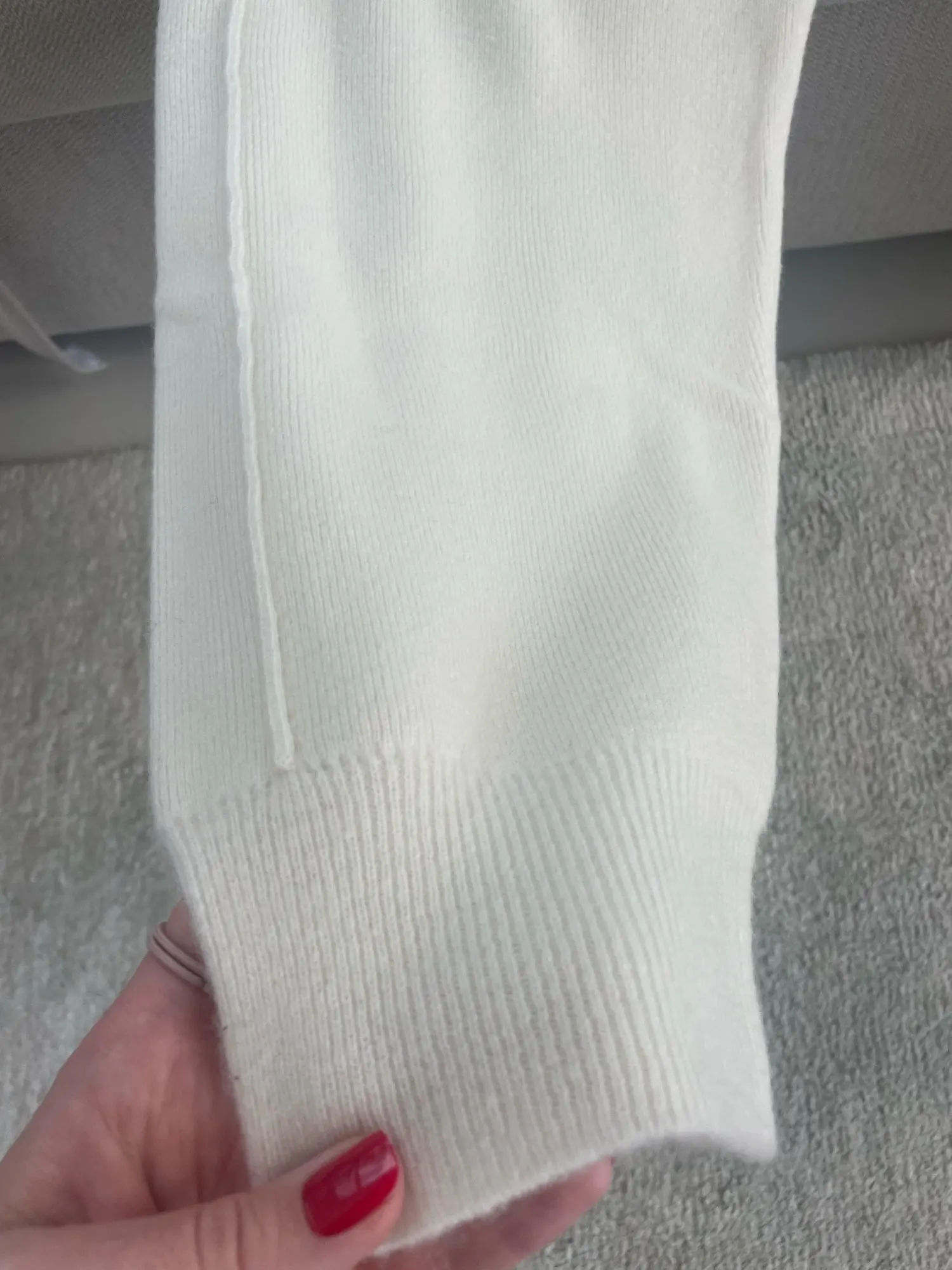 It’s wool. Good quality. I’m 170 sm tall, 92-70-94 and took XL on recommendation of the seller. It’s having a loose effect, maybe I should get L, but it is ok. The length is ok for tall person . Fast delivery