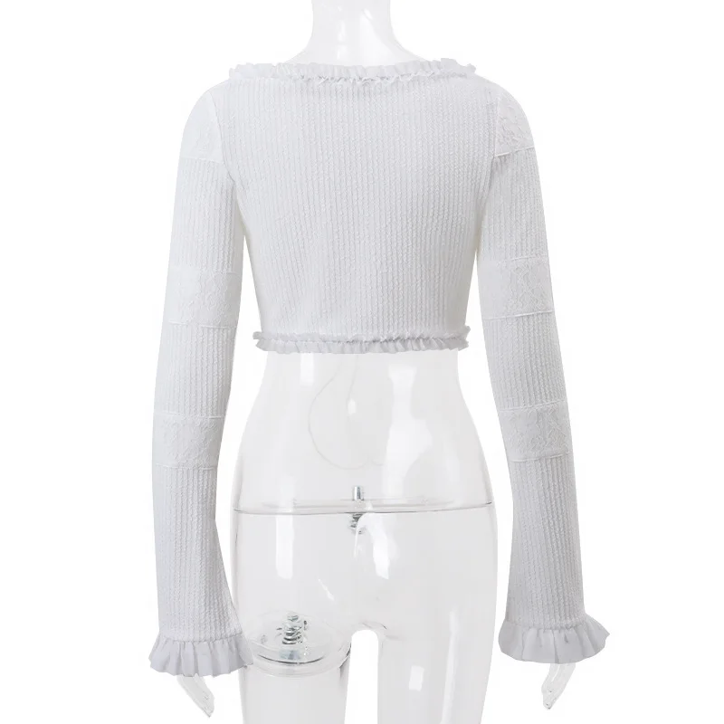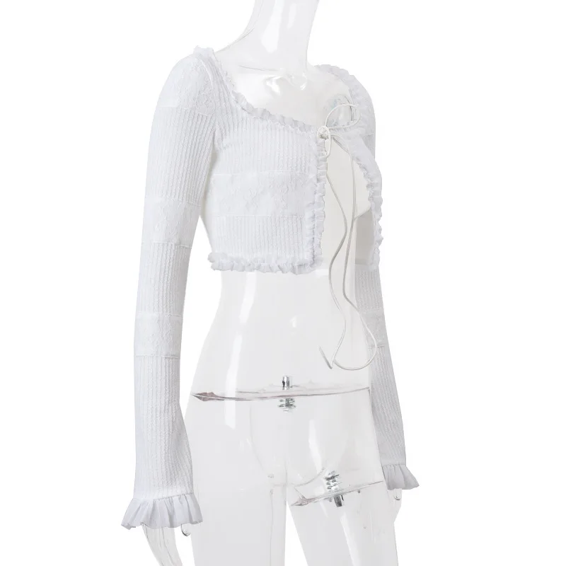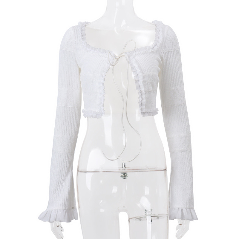 FREE SHIPPING Women Outfits Vintage Long Sleeve Cardigan Tops And Ruffle Mini Skirt OUT0986