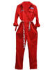 FREE SHIPPING Women Red Streetwear Jumpsuit Long Sleeve Zip Up Utility Boiler Suit with Belt OUT1135