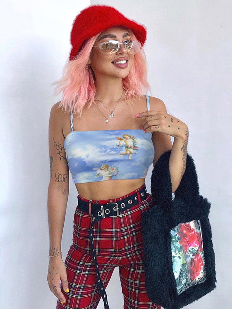 FREE SHIPPING Women The Angel Of Cupid Print Short Summer Top OUT1075