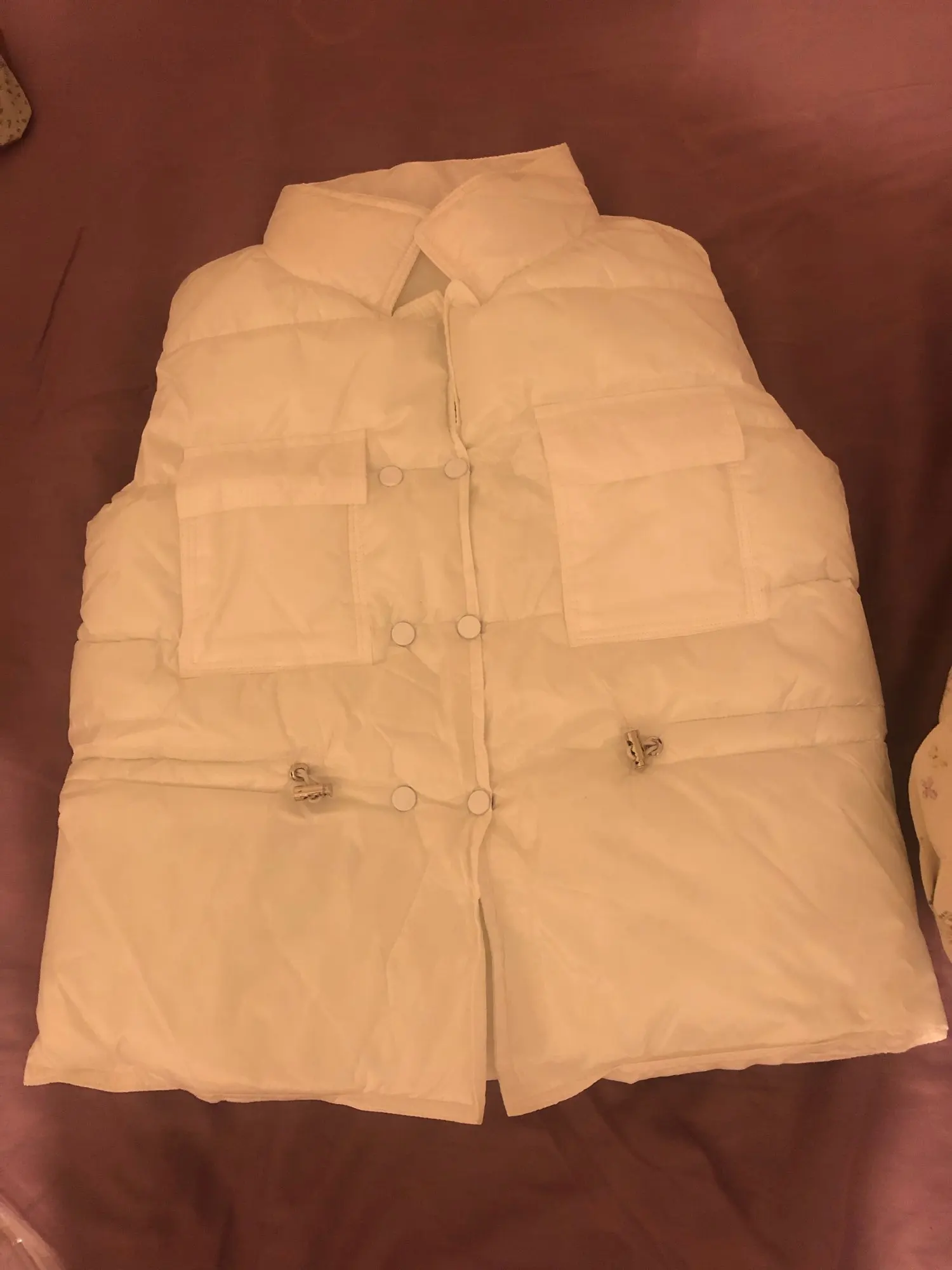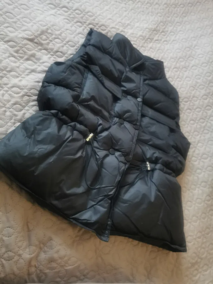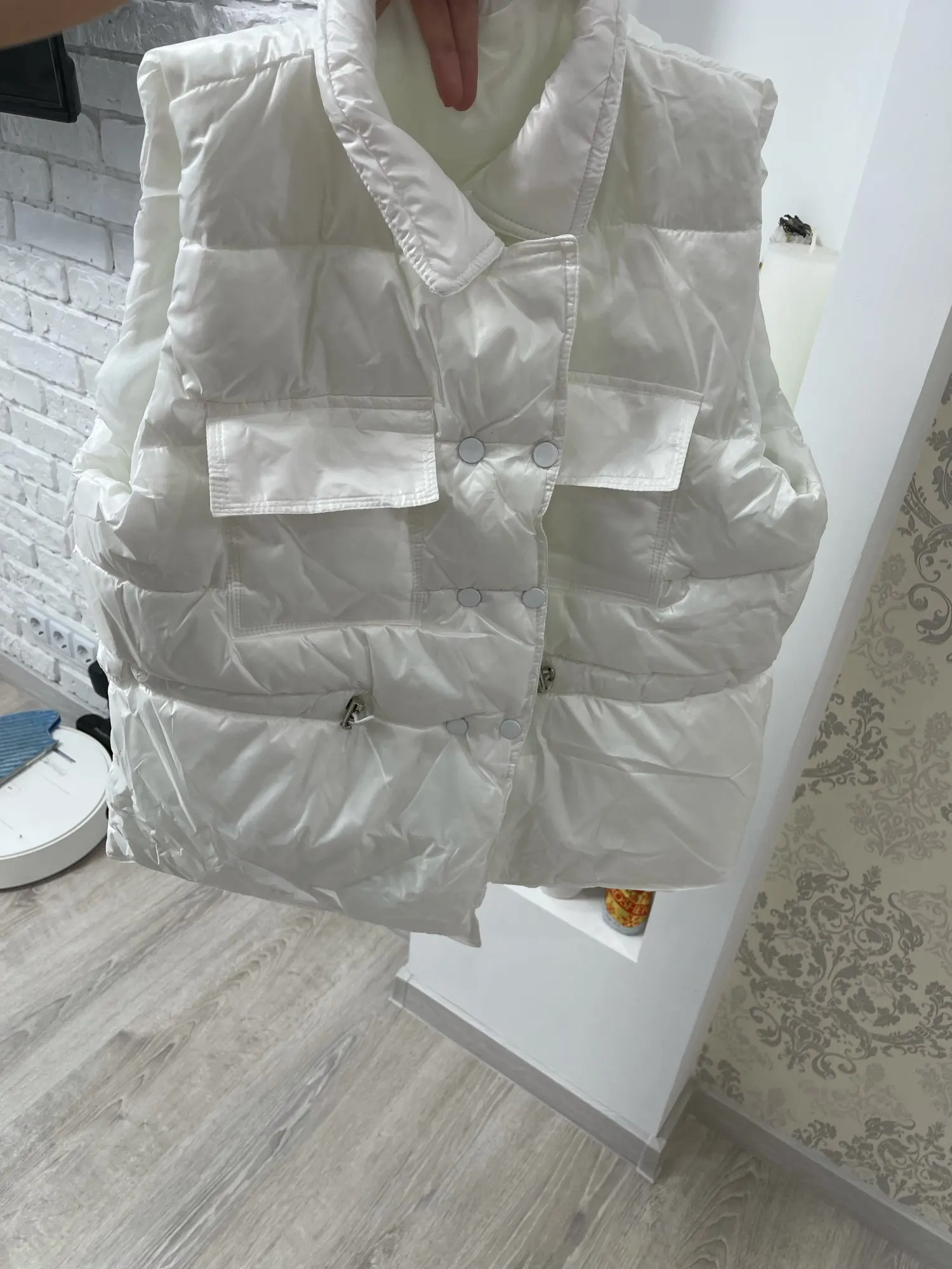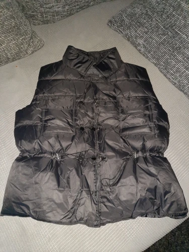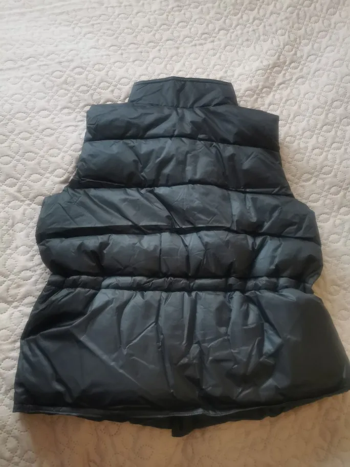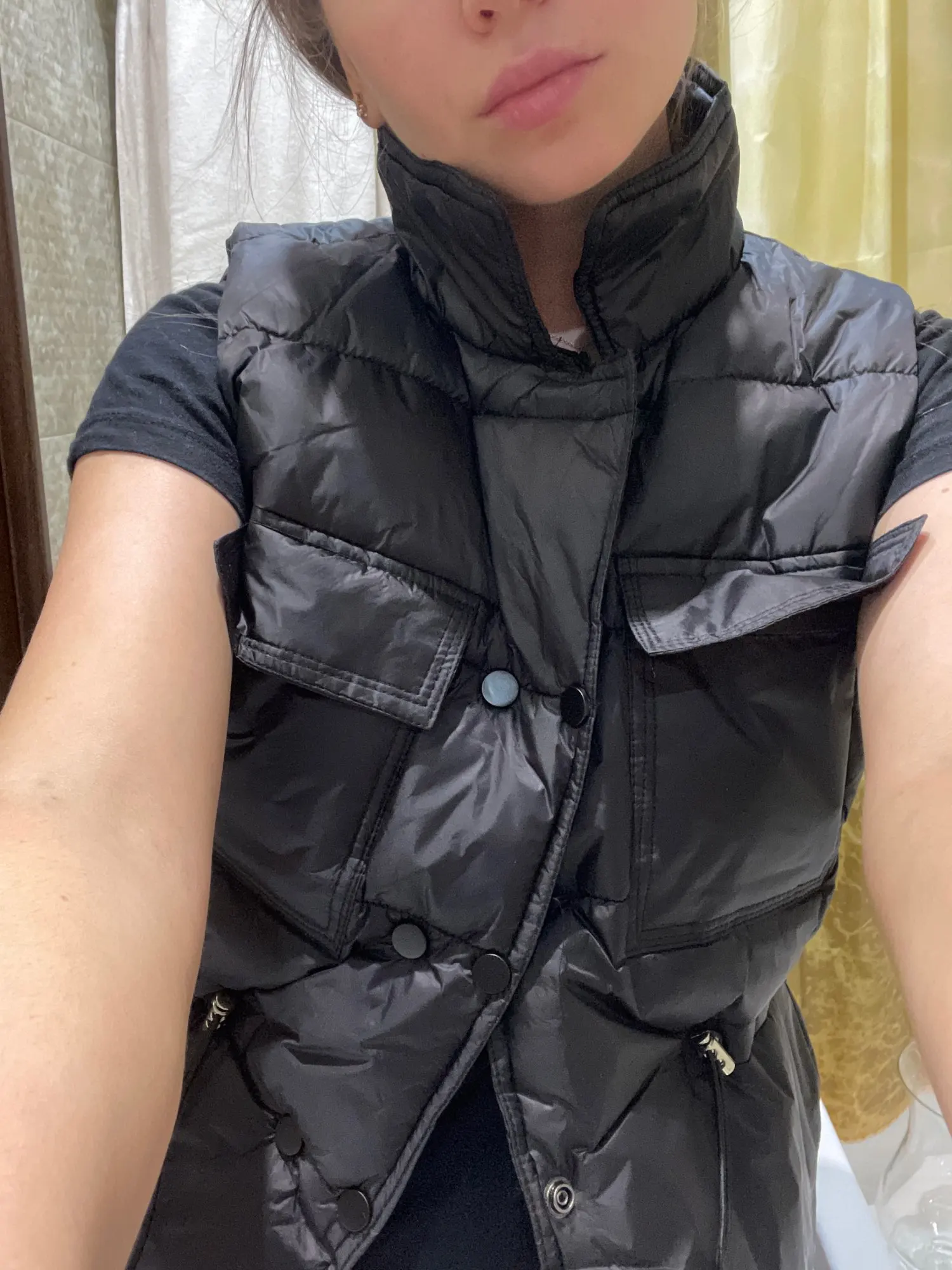 Неплохая жилетка, но очень короткая. На мой рост 170см выглядит как будто «подстреленная». И есть ощущение, что клепки не очень хорошего качества. Подойдёт миниатюрным девушкам. На мой размер 46-48 расходится внизу. Доставка до Москвы 2 недели