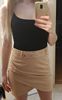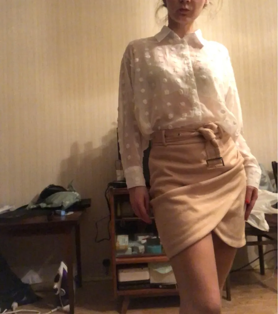 The skirt reached 2 weeks to Moscow. The fabric is pleasant. There are protruding threads. On growth 156. The volume of the hips 98 took S. Back to back, it was necessary to take M.