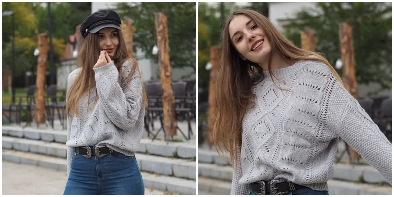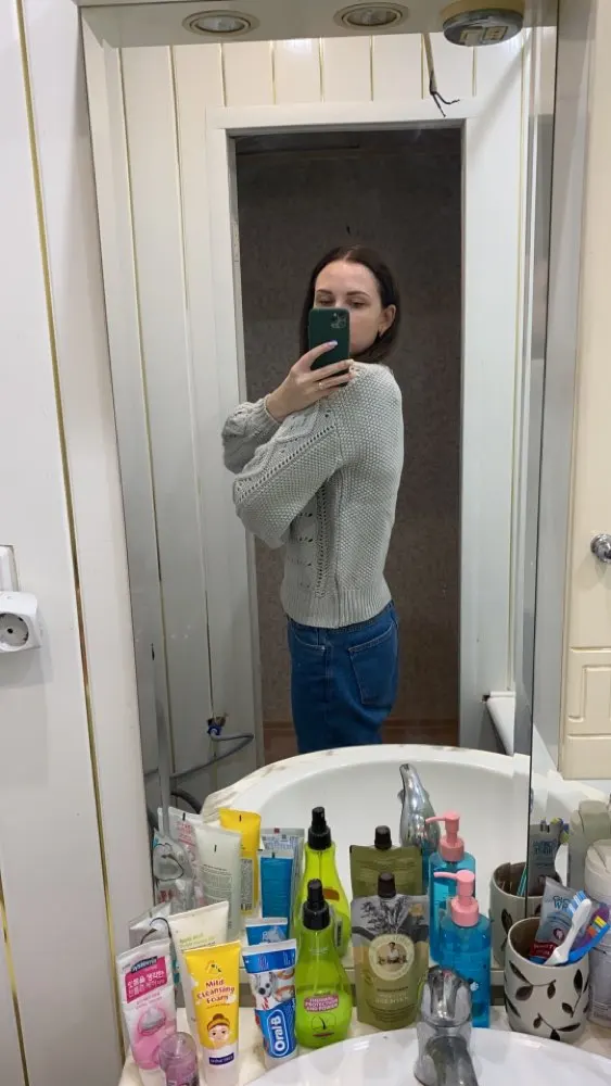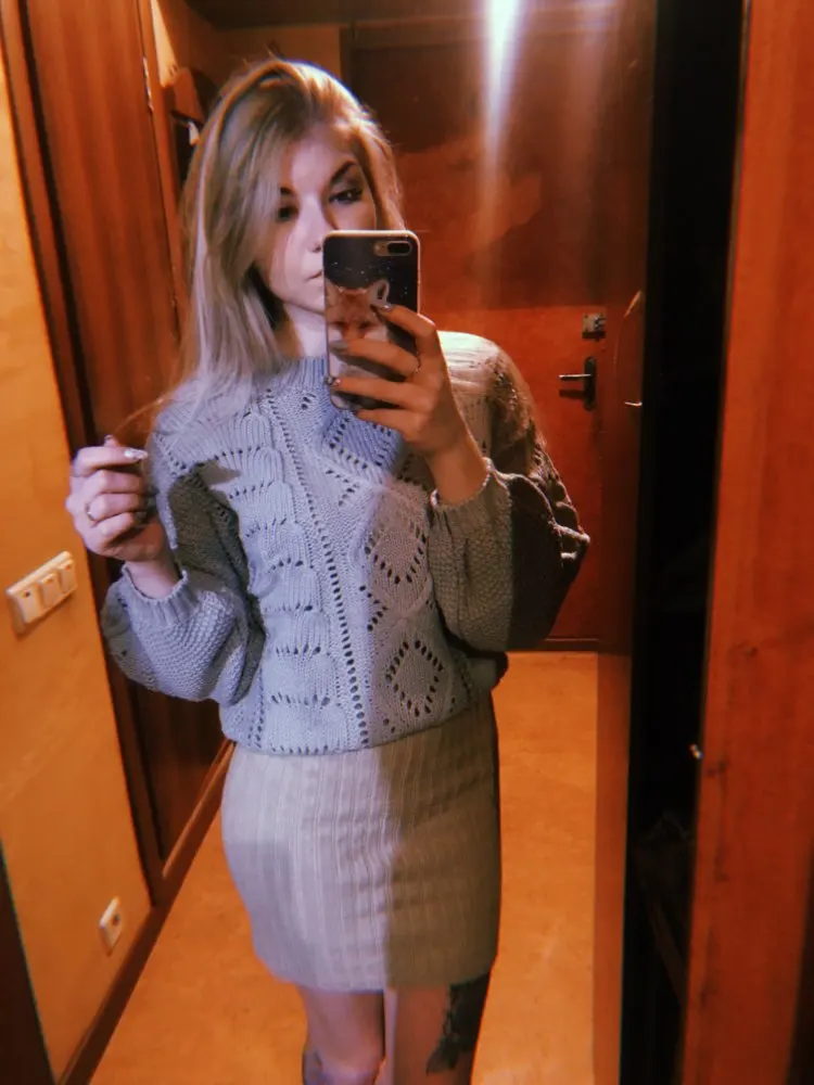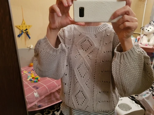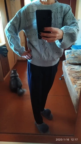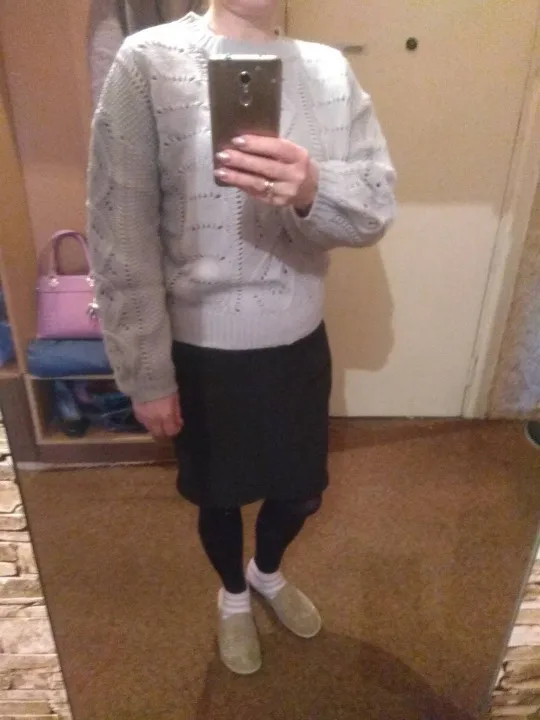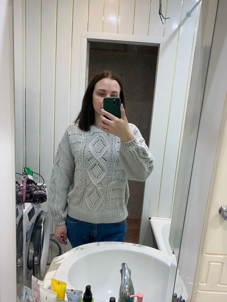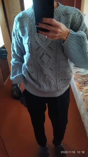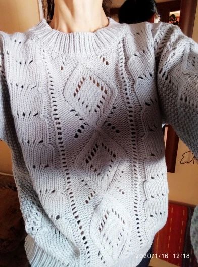 Delivery to Kiev-58 days. The sweater came with a strong smell, which slightly faded on the balcony, but I'm going to wash anyway. Knitting is beautiful, but the sweater is not particularly warm, short. I wear a XS-S and on my parameters 82-64-90, height 170 cm, weight 53 kg sweater villages overseas. Real measurements of sweaters are as follows: length-55 cm, bust-110 cm, shoulders-57 cm, sleeve-47 cm. The color is dirty gray. It looks interesting due to knitting.