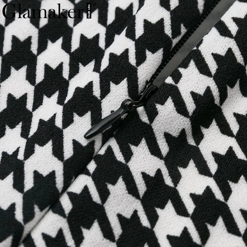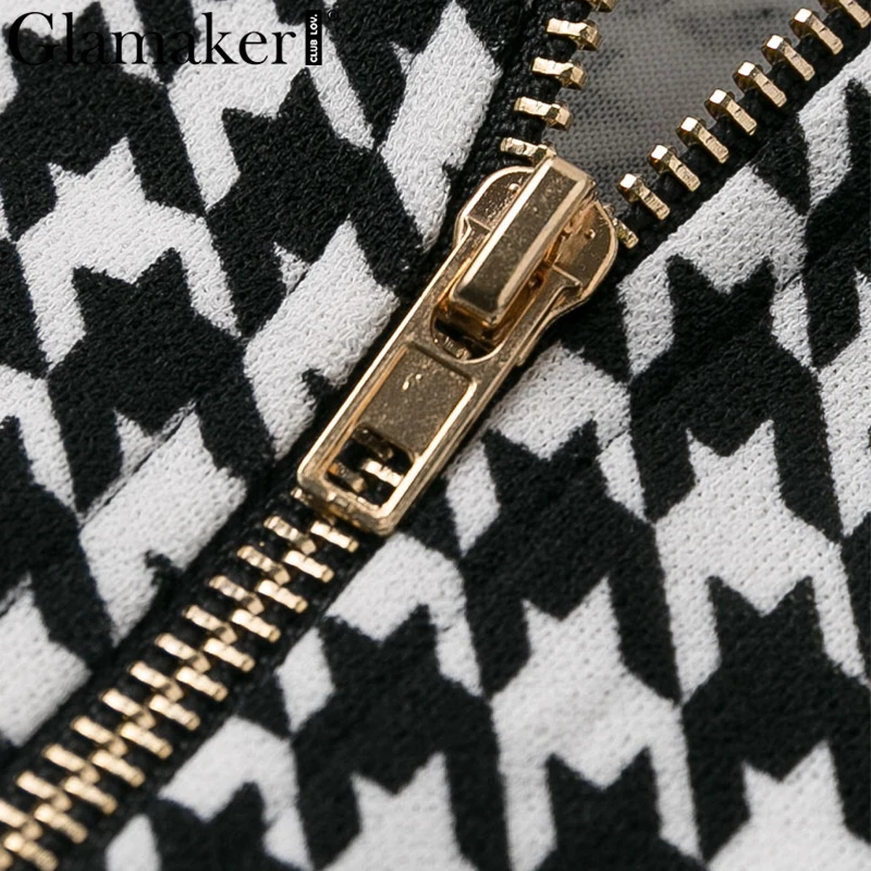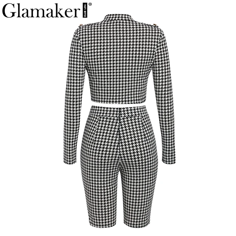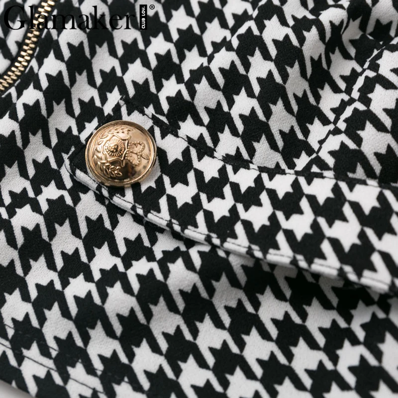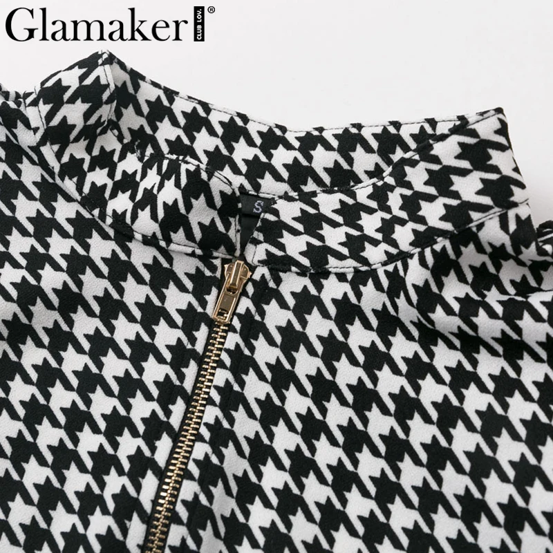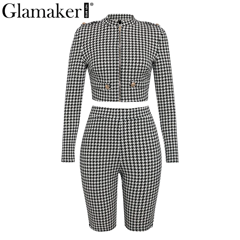 Houndstooth Zipper Elegant Romper Women Autumn Bodycon Sexy Playsuit Set L0306