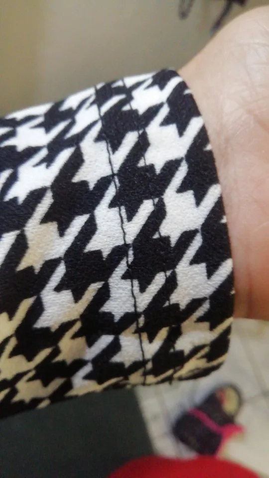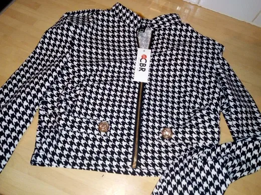 Looks as described. Well crafted and beautiful fabric. Discolored not After Wash. Fits Super, only the Jacket is slightly too short (am 178cm tall). Like me well and I would buy it again. Really beautiful Set for the Price. Easy super sweet and chic.