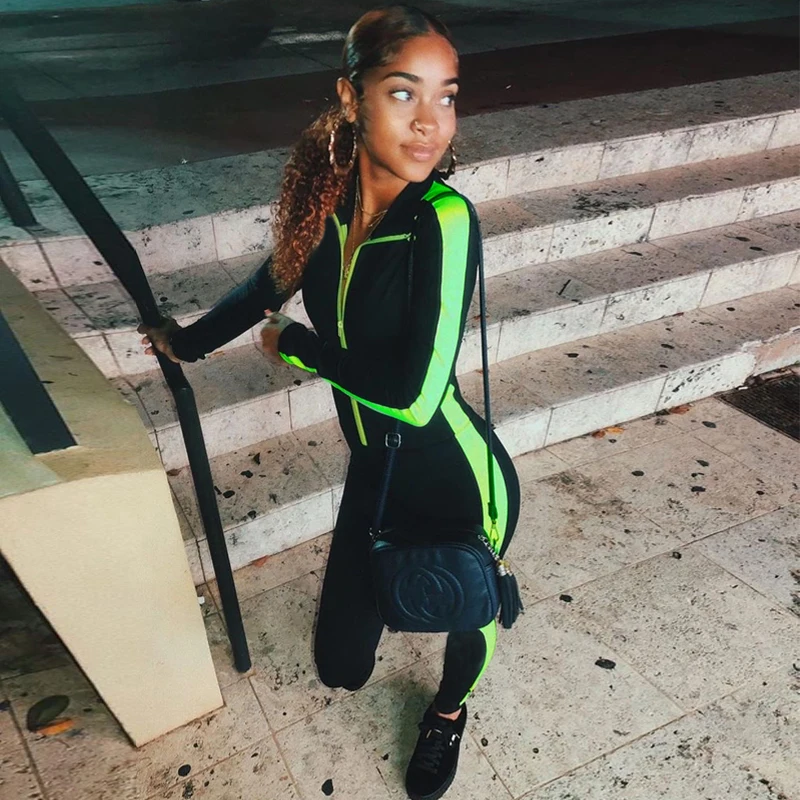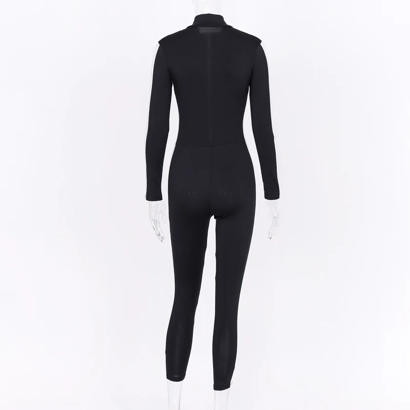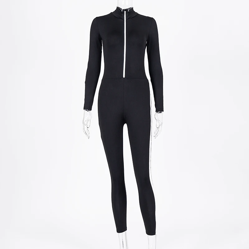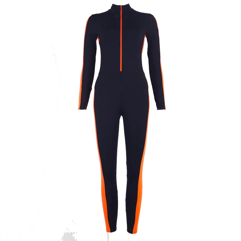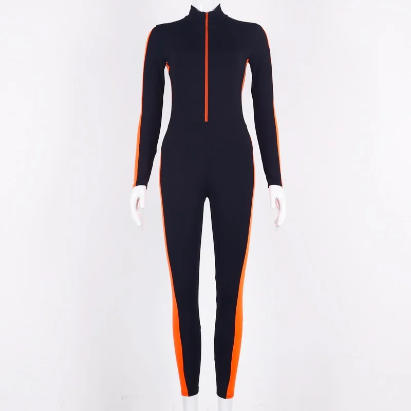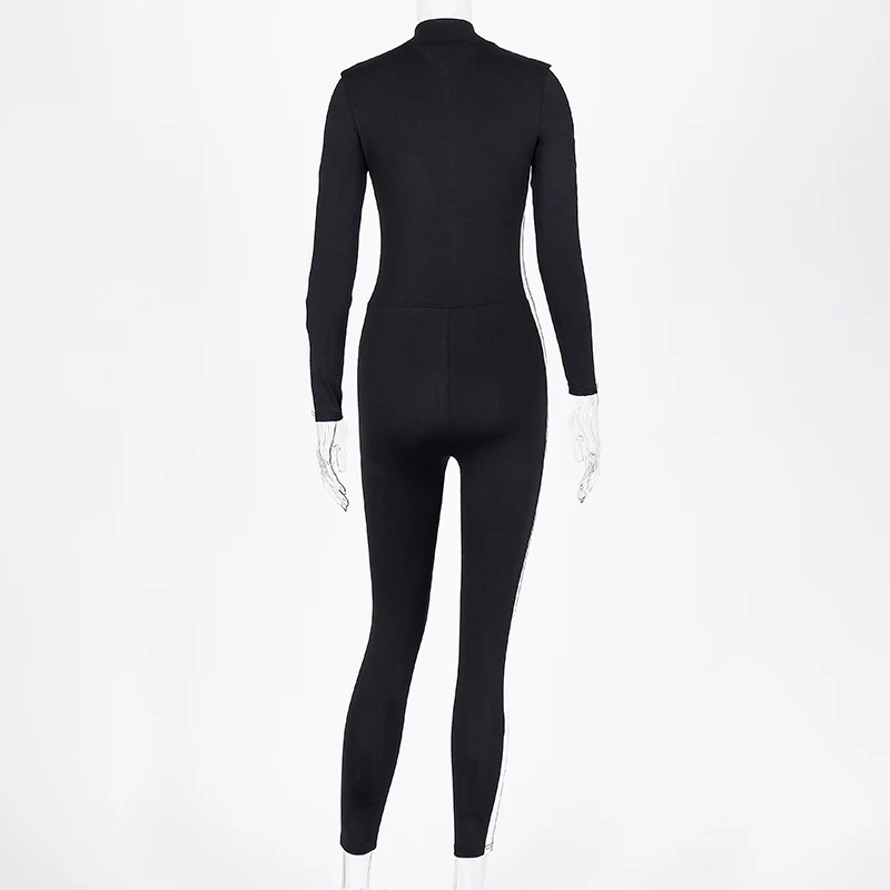 Long Sleeve Striped Patchwork Zippers Jumpsuit Stretchy Streetwear Outfits L0227