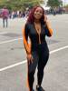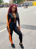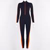Long Sleeve Striped Patchwork Zippers Jumpsuit Stretchy Streetwear Outfits L0227