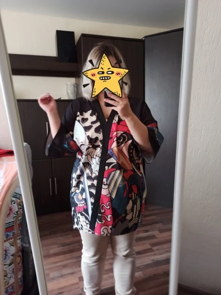 Delicious in quality haori, pleasant fabric, does not stick to anything and does not electrify. The size approached perfectly (discussed in communications with the store). No sticking thread, a beautiful clear pattern. I am happy, 10/10, seller recommend