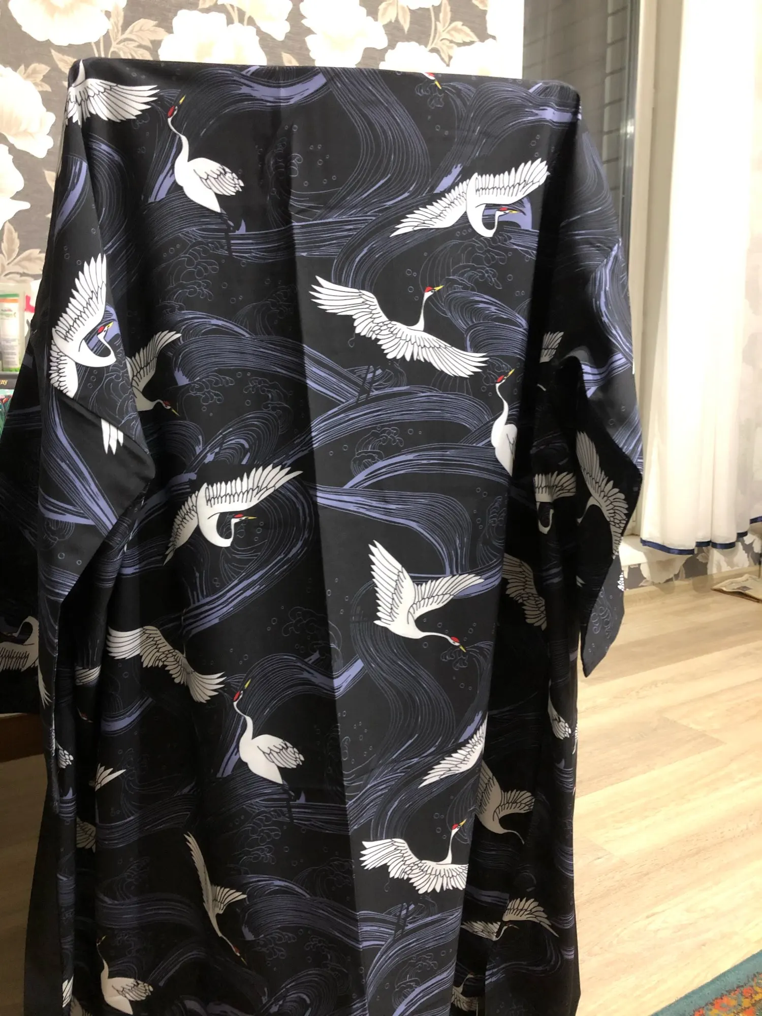 The kimono was delivered on time, the fabric-synthetics, expected that it would be denser, but also so good. The seams are even, the pattern is clear, you can order