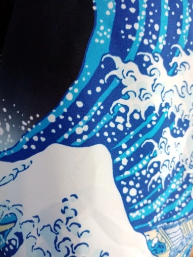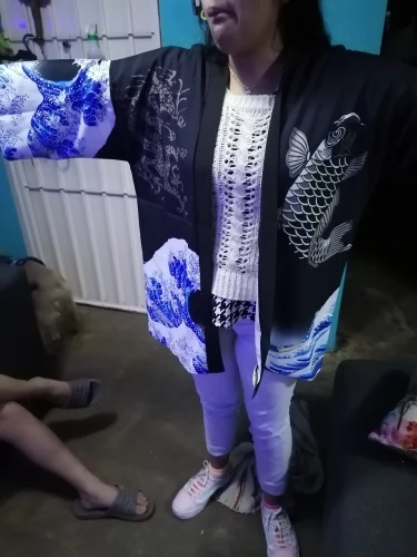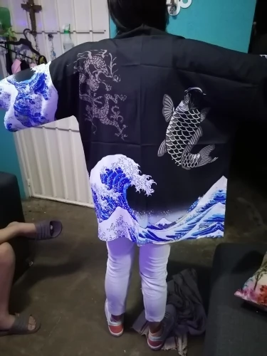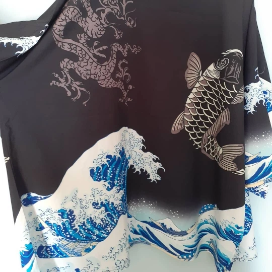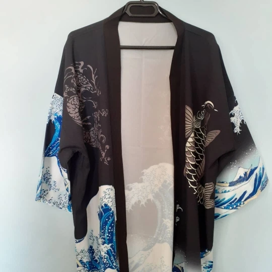 Excellent kimono, the print is clear, the seams are good, the threads do not stick out anywhere. The fabric, of course, is full of synthetics, but on the T-shirt/T-shirt evening to throw quite comfortable. Most likely, later I will order also with other prints. By the way, the delivery was very fast, which is also a plus.
