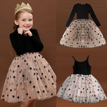 FREE SHIPPING Kids Long Sleeve Lace Drsses for Girls Party Dress Star Printed Birthday Tutu Dresses L0260