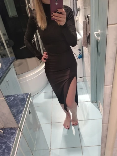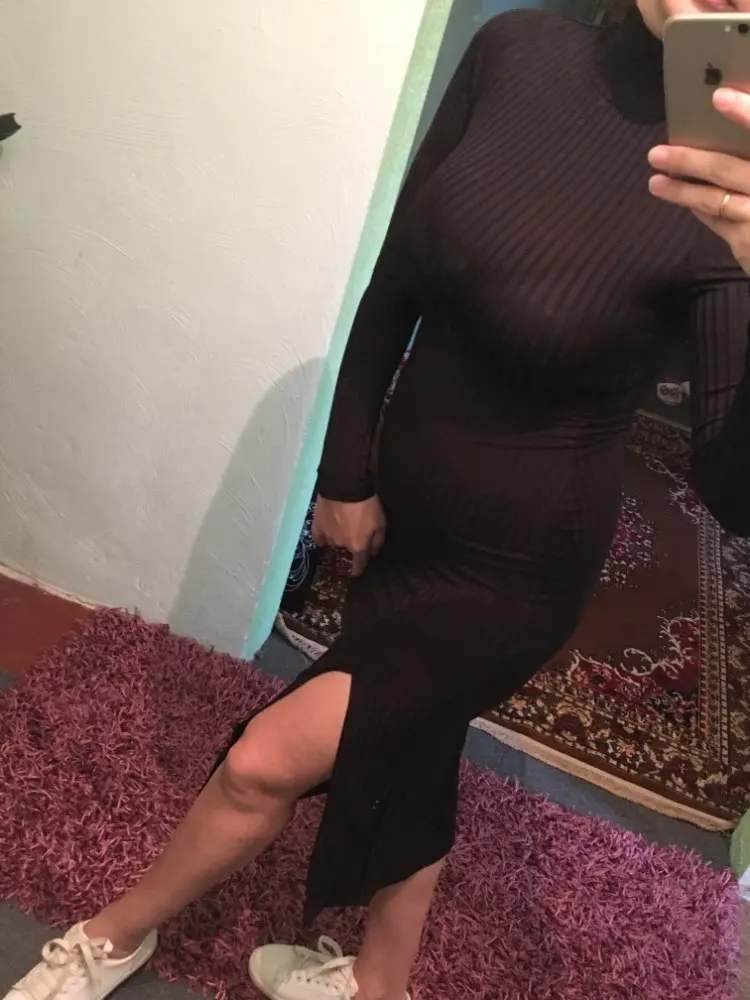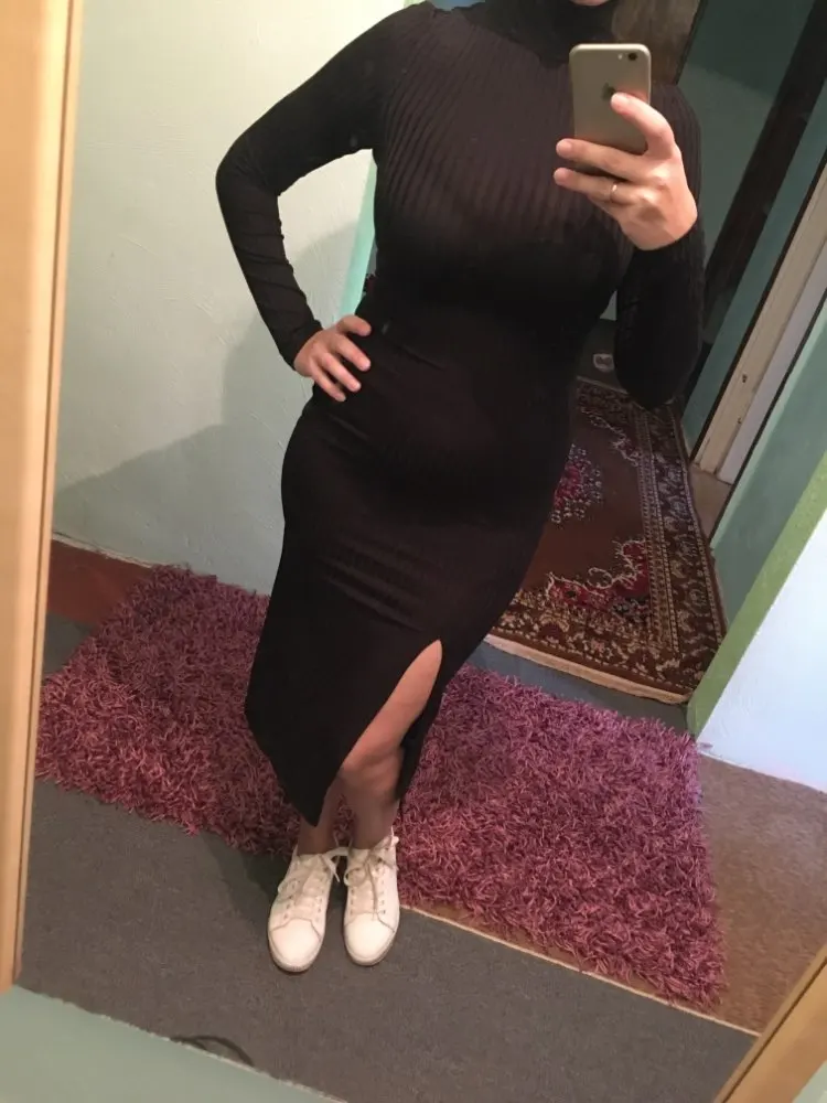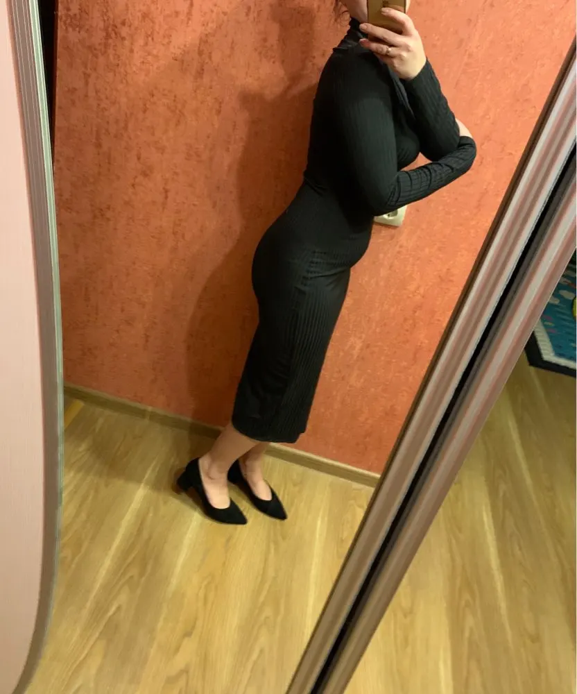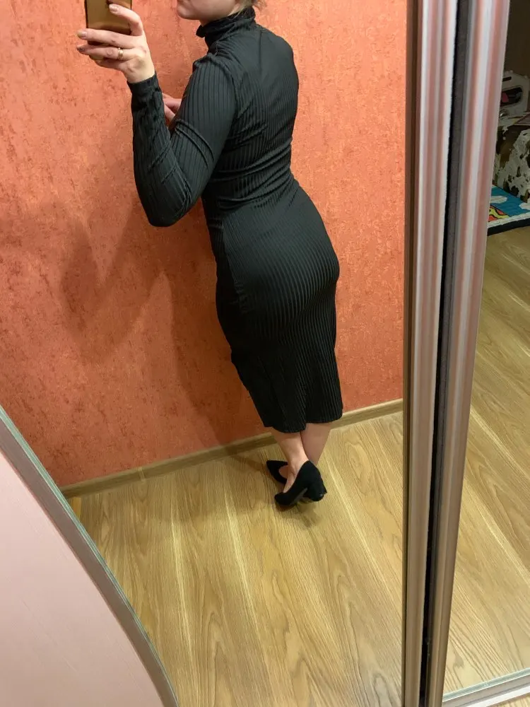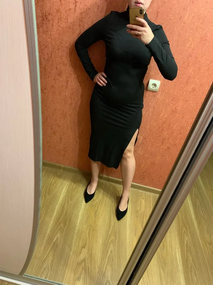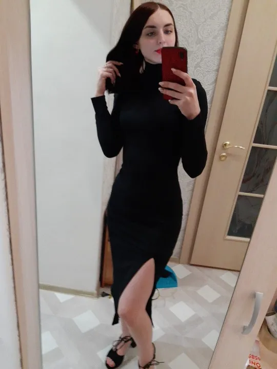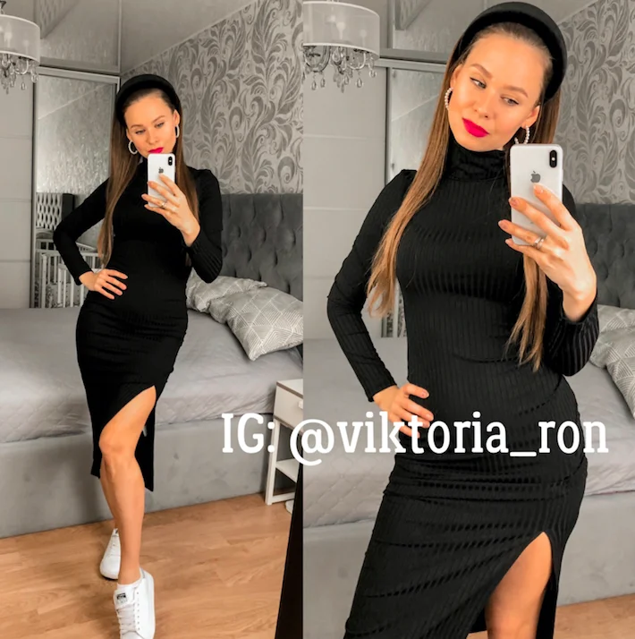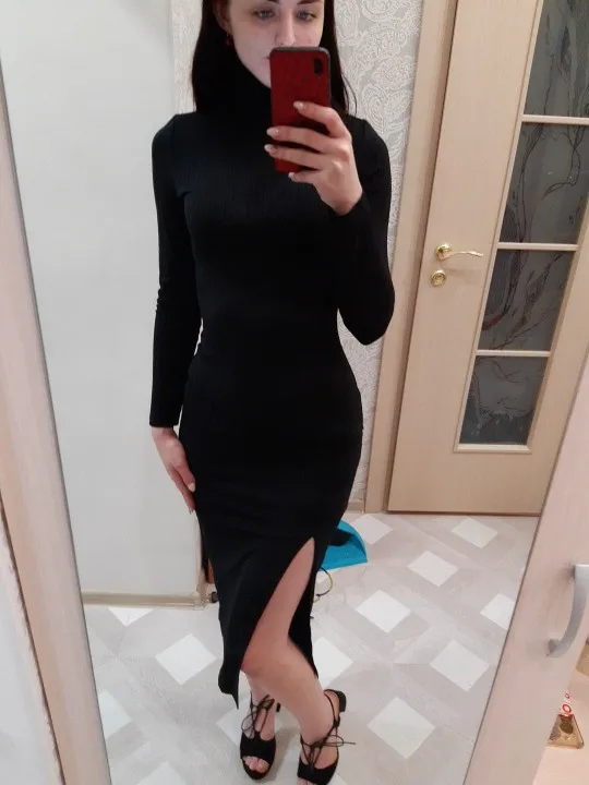 The dress was pleasant, it is made of fine knitwear (not knitted), a classic dress-noodles with a cut on the leg. The length i learned to the middle of caviar. My height of 167 cm. In such a dress you can go to the office, wearing a jacket over and in the evening go to the club, adding bright landings and accessories. So i recommend every girl to get a similar dress in the feast and in the world. It stretches perfectly, suitable for pregnant women. It was possible to take and s, i think, although m also fits well. The material shines through the light, but it is not visible on the body. The contours of the laundry of course look, you need to put only seamless under it. Sewing factory, good quality. The seams are processed, everything is smoothly sewn. No extra thread or unpleasant smell. Video review see in my instagram: @ viktoria_ron. There i do reviews faster and more. And i also make collections of cool things. So sign up! Seller recommend, very good store with fast delivery