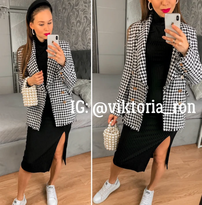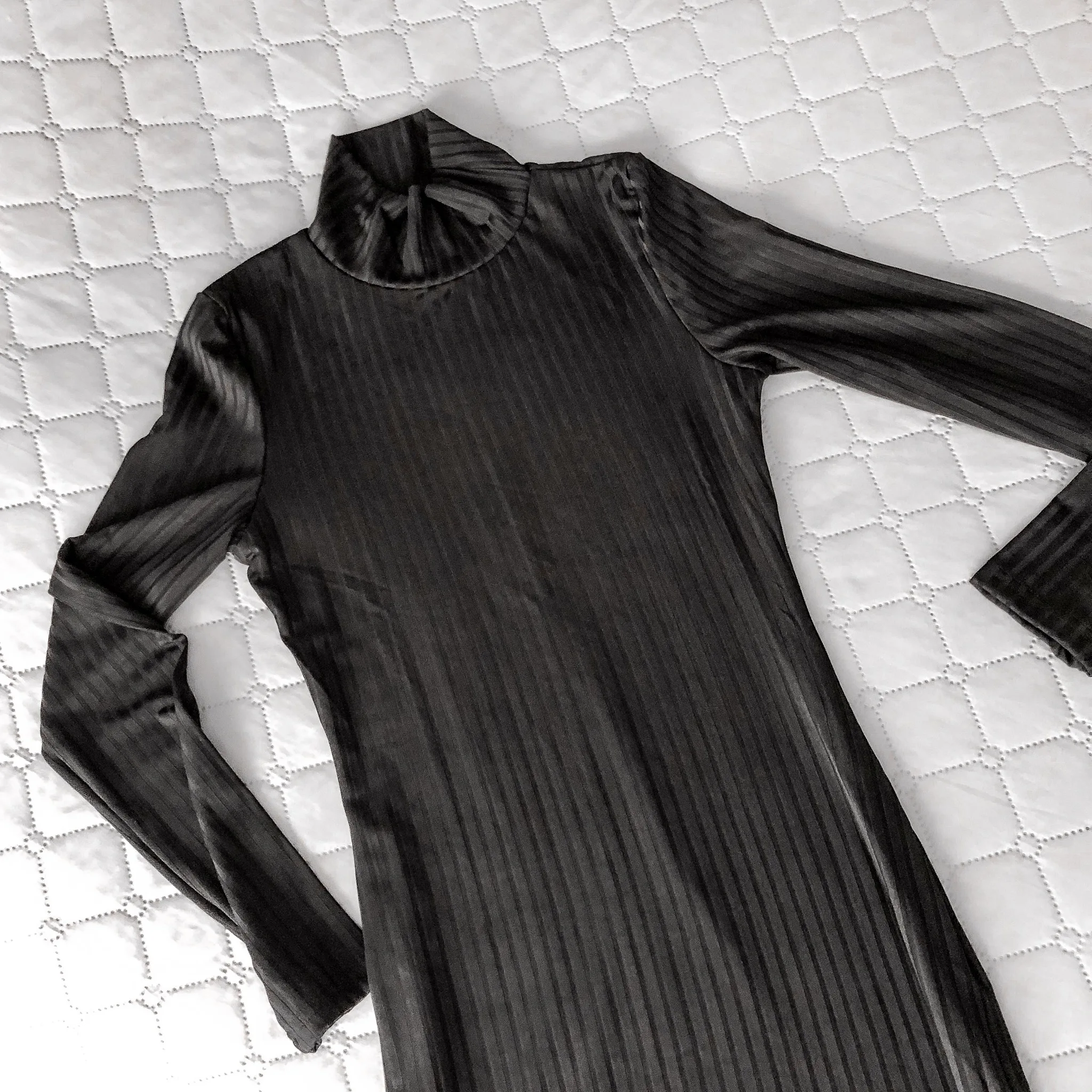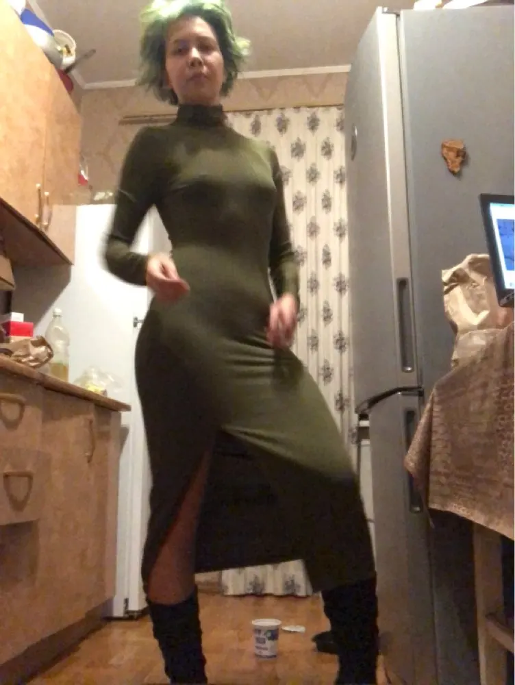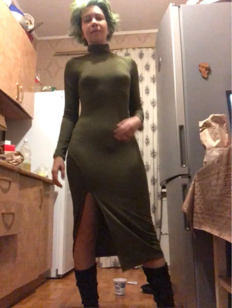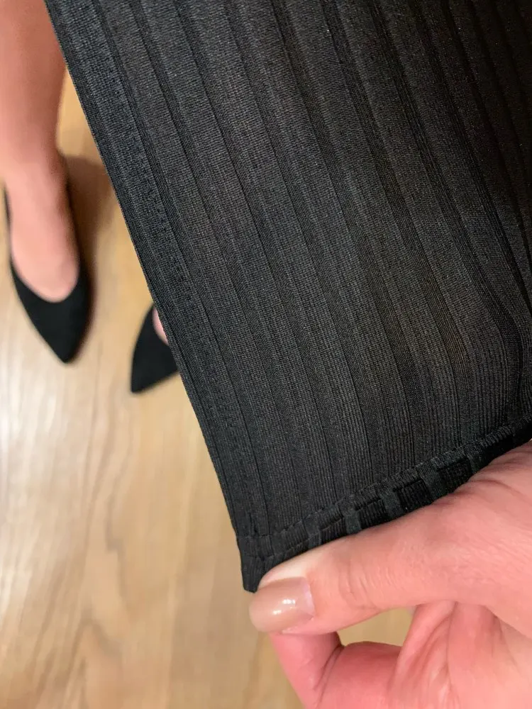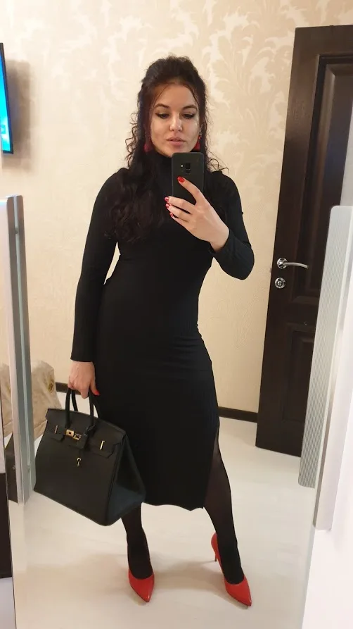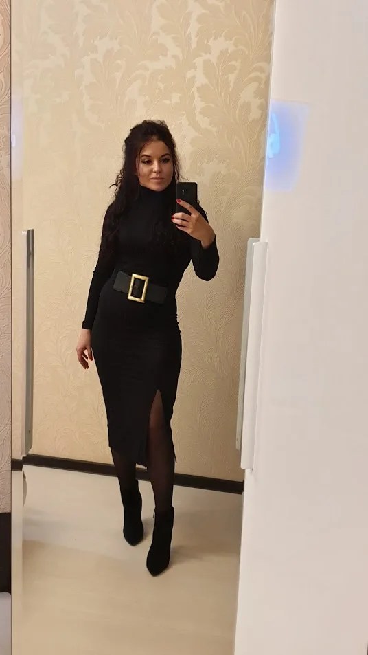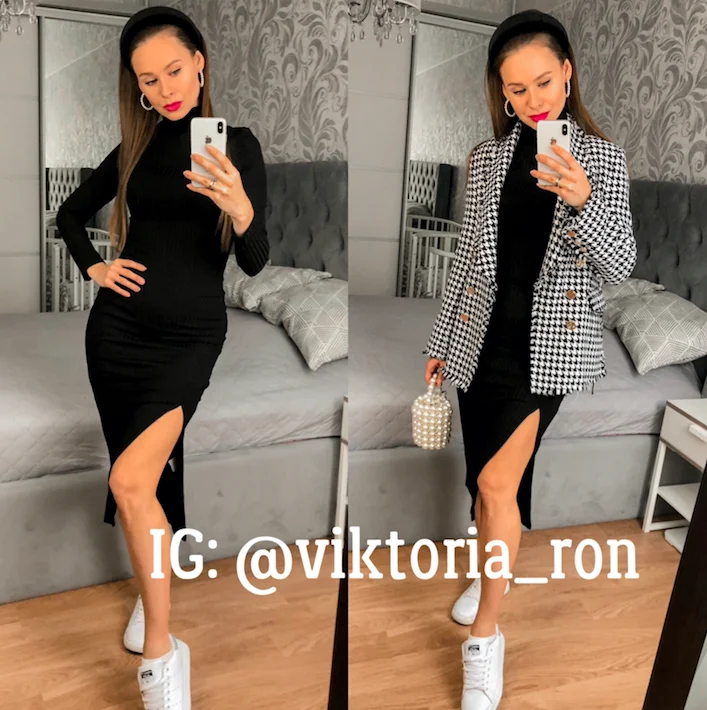 The dress was pleasant, it is made of fine knitwear (not knitted), a classic dress-noodles with a cut on the leg. The length i learned to the middle of caviar. My height of 167 cm. In such a dress you can go to the office, wearing a jacket over and in the evening go to the club, adding bright landings and accessories. So i recommend every girl to get a similar dress in the feast and in the world. It stretches perfectly, suitable for pregnant women. It was possible to take and s, i think, although m also fits well. The material shines through the light, but it is not visible on the body. The contours of the laundry of course look, you need to put only seamless under it. Sewing factory, good quality. The seams are processed, everything is smoothly sewn. No extra thread or unpleasant smell. Video review see in my instagram: @ viktoria_ron. There i do reviews faster and more. And i also make collections of cool things. So sign up! Seller recommend, very good store with fast delivery