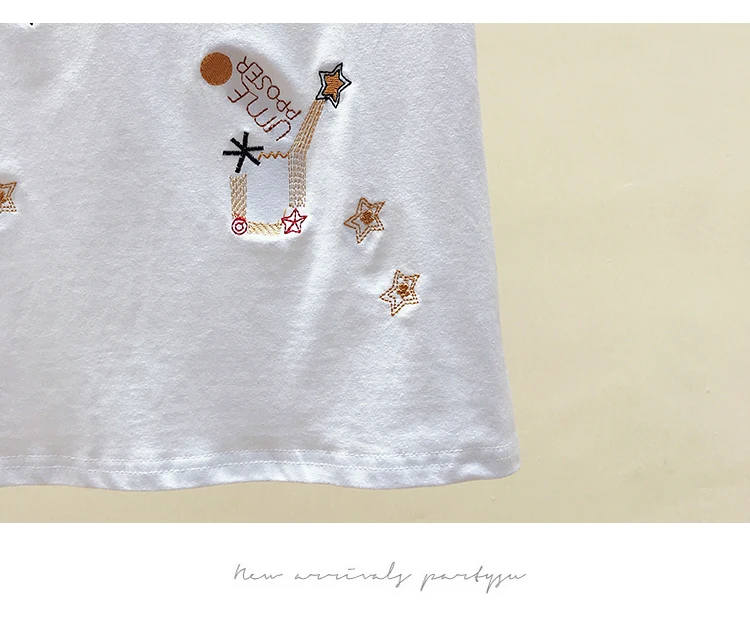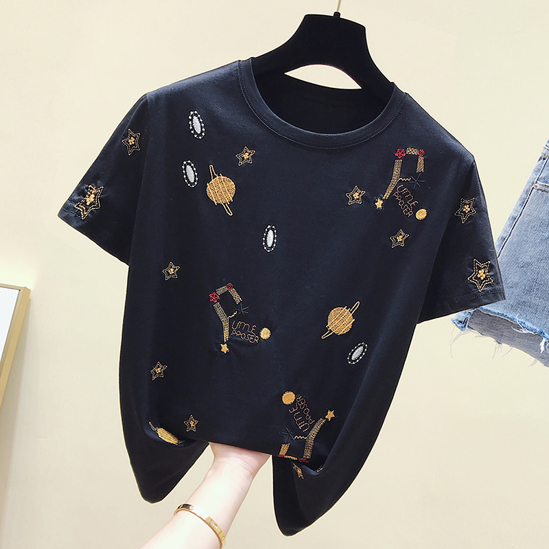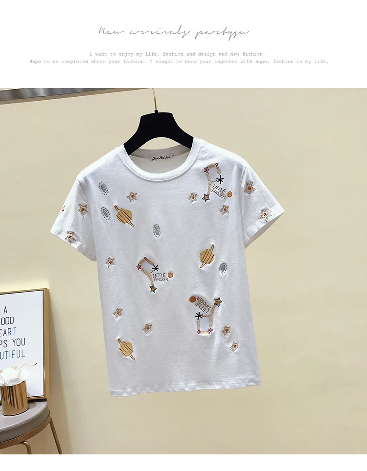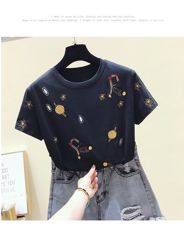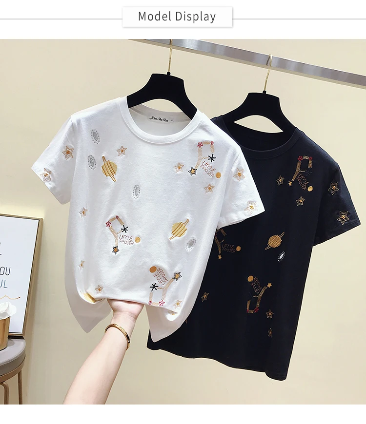 Korea White Black T shirt Summer Short Sleeve Embroidery Vintage Casual L0080