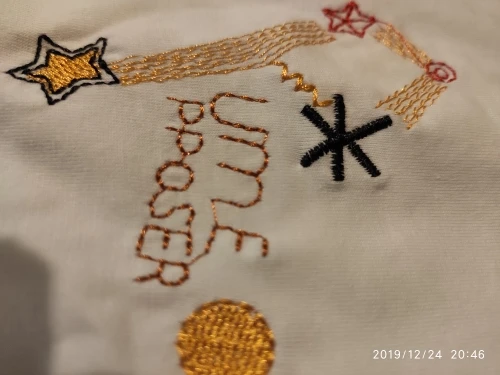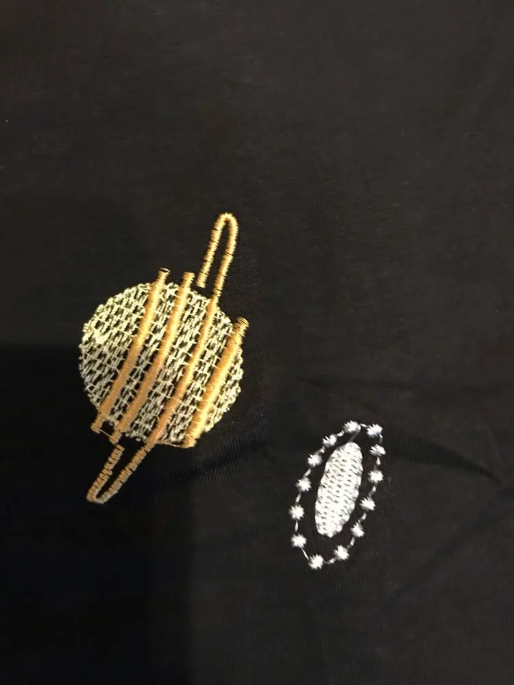 Mike is charming. I really like that comets and planets are embroidered, looks very beautiful.