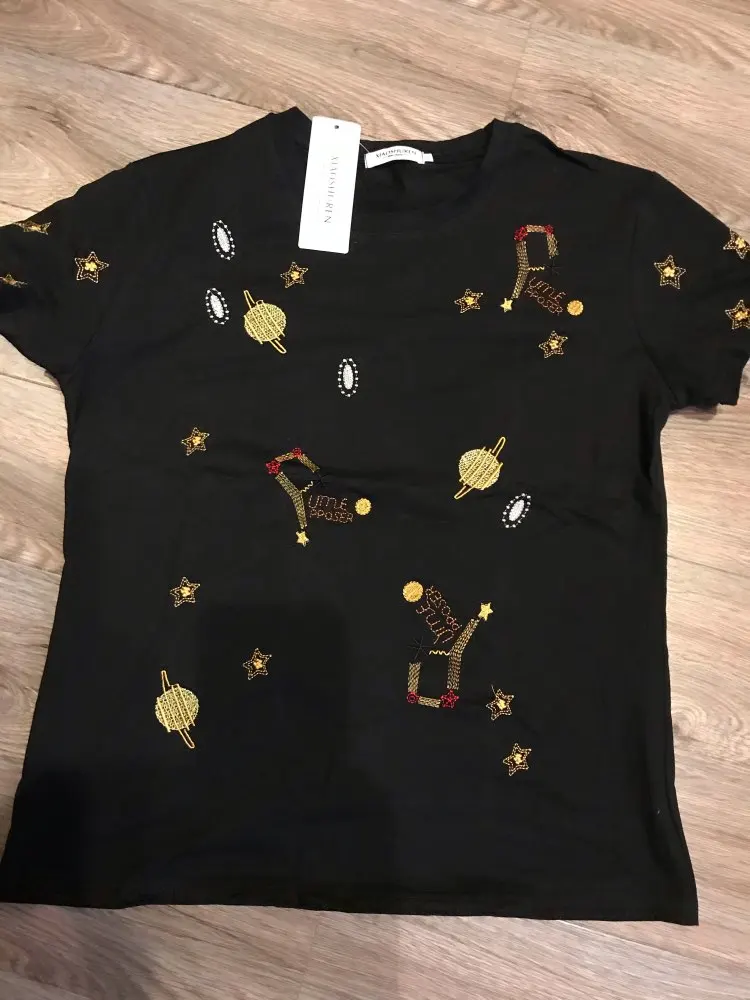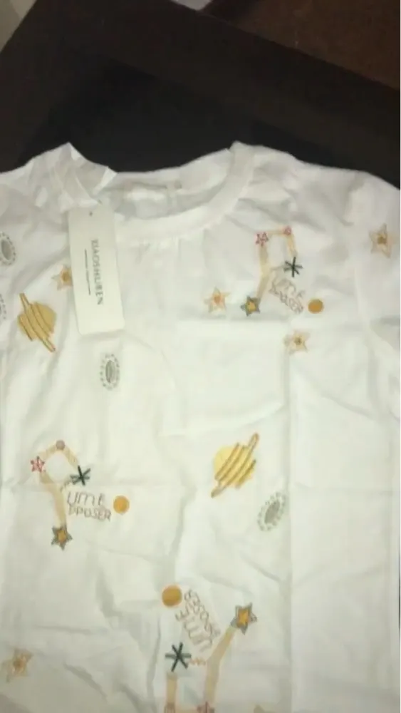 Excellent T-shirt, quality. Nice stretching material, embroidery, not sticker. I recommend. I did not communicate with the store. Ordered for 11.11, sent quickly, came quickly.