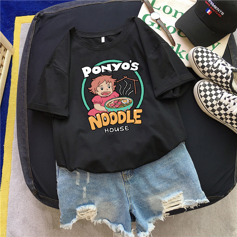 korean Food T-Shirt Harajuku Noodles Cat Print OUT0797