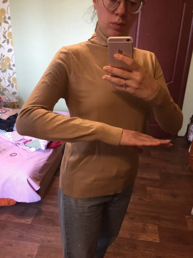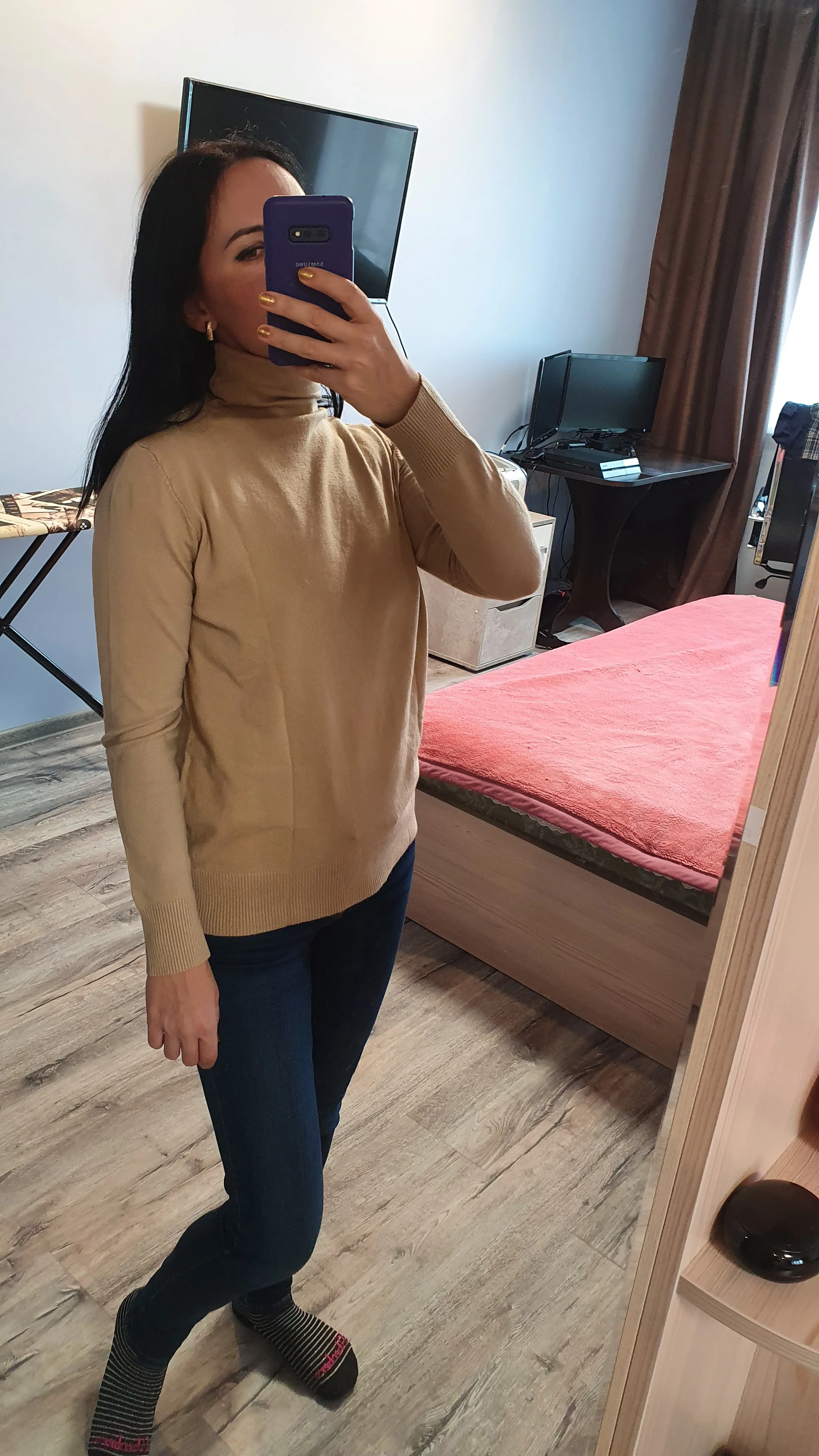 I got my turtleneck, I order a second time, everything is fine. I took my sister in size XXL, Russian L 92/74/105 not in the form, freely as I wanted. But for some reason, the color came a little different, although I ordered in the same color. In principle, the color is also good. Thank you.