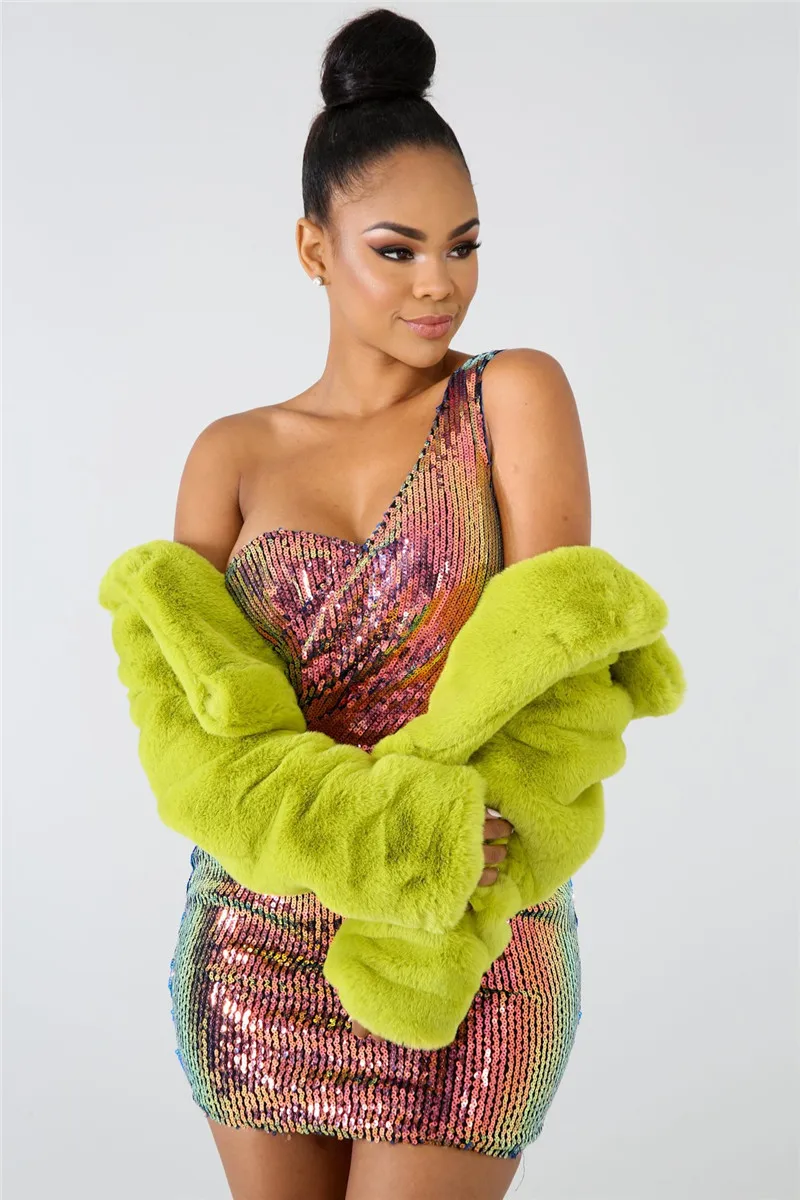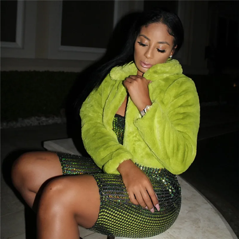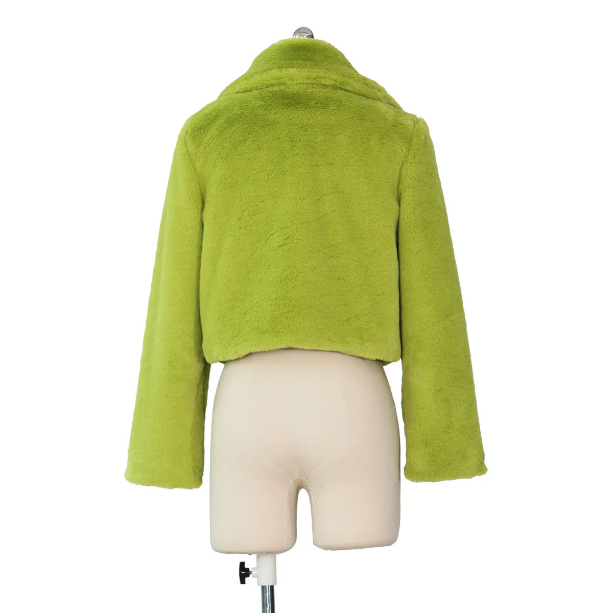 Lime Green Short Faux Fur Coat Winter Neon Teddy Coats