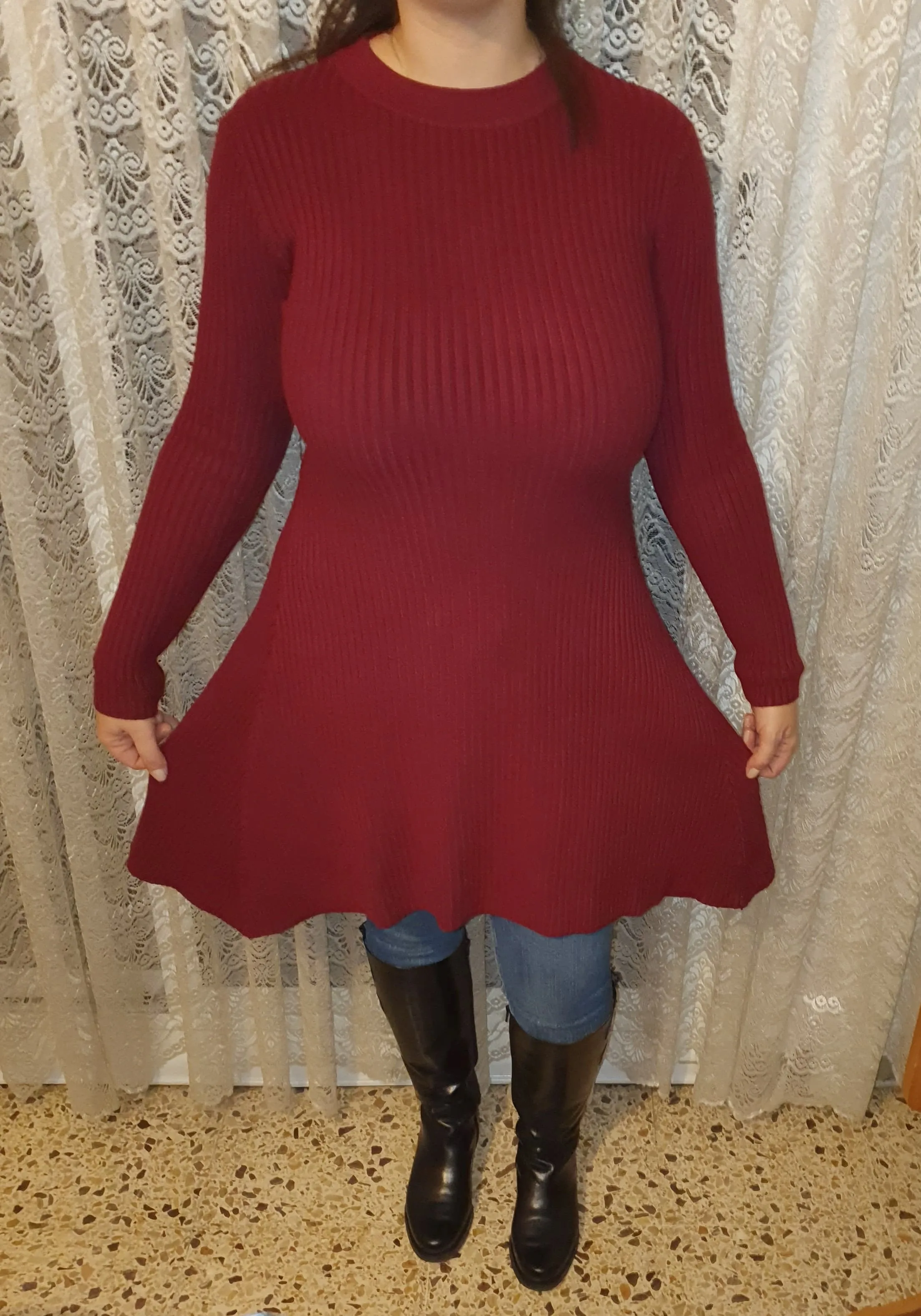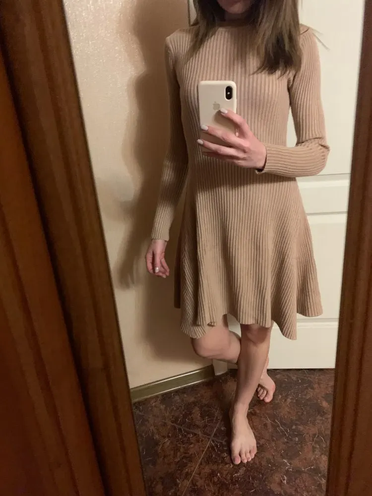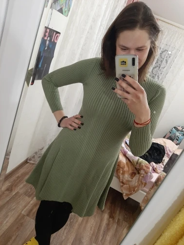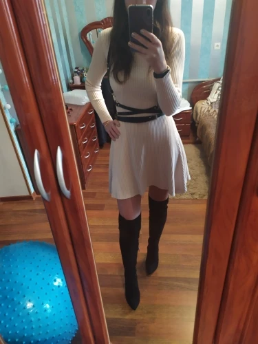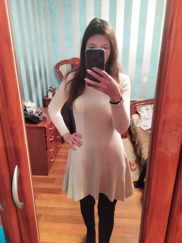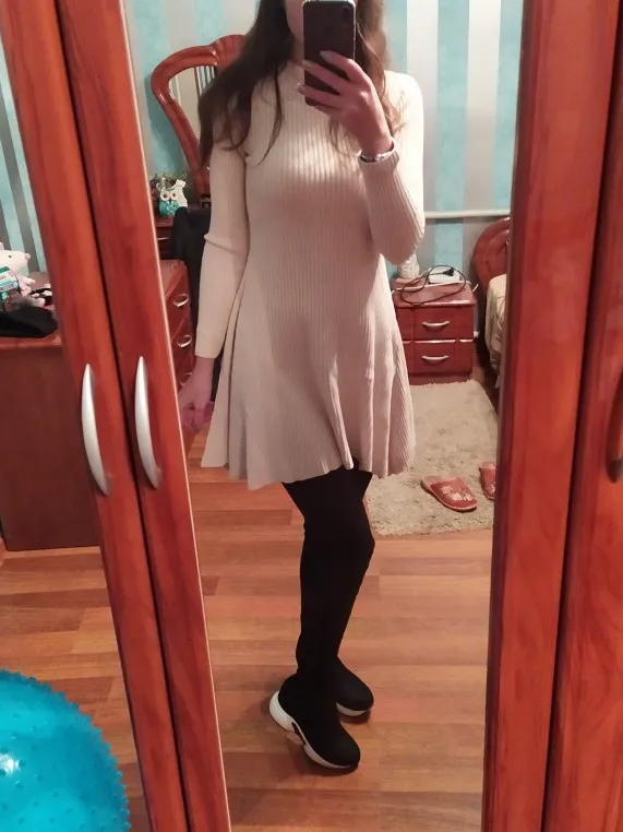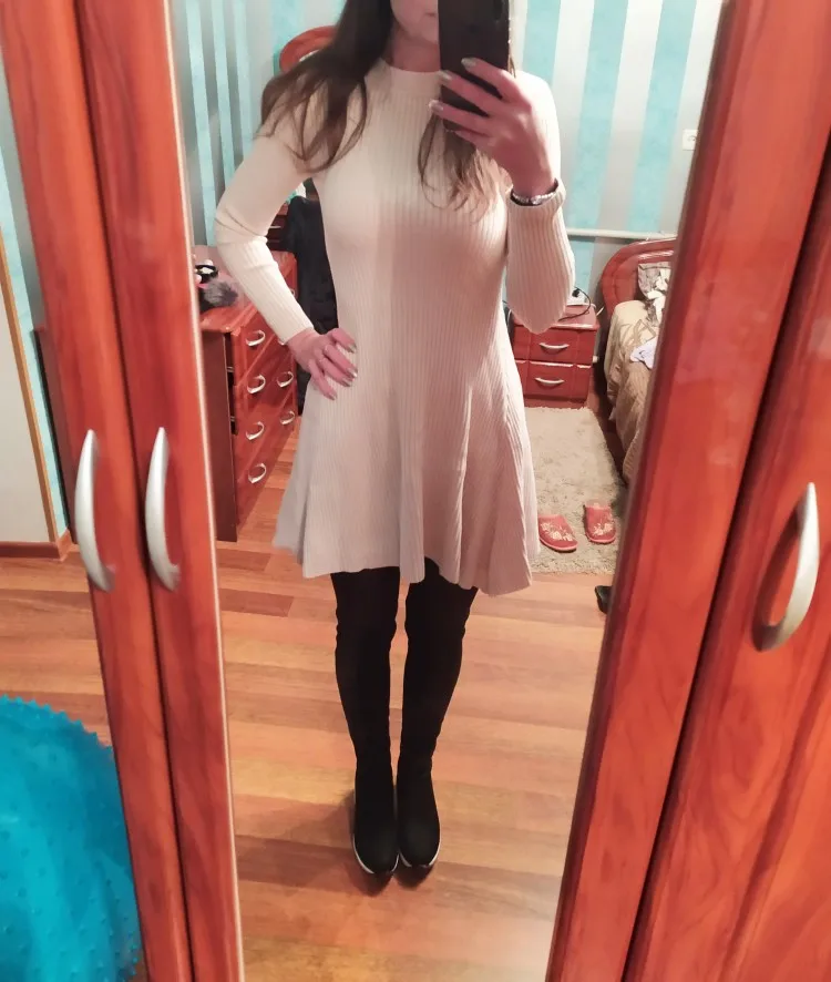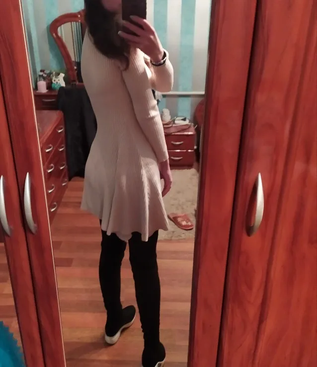The dress is cool!) for a long time doubted, thought thin, but it is very dense, keeps the shape well, very pleasant to the body! On the height of 162, 84/62/90 the length is just above the knee, on the sides a little longer because of the style. I think to order in a different color!)