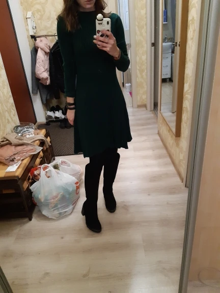 I ordered January 24, the store sent only February 9, the parcel came to St. Petersburg on February 28, it was tracked all the way. The package was heavy, a dress made of tight jersey. Folded was so successful that you do not need to iron) no folds, no creases. Color-beautiful Emerald, the dress does not smell anything. On my parameters 90-68-99, height 170 cm the single size of the villages is good. Length-on the palm below the priests) looks very feminine.