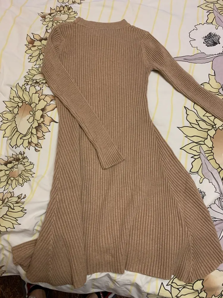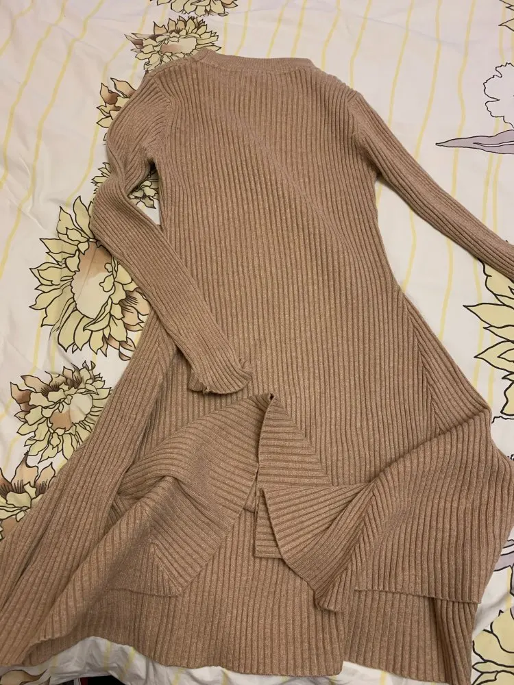 Long Sleeve Sweater Dress Casual Autumn Winter O-neck A Line Short Mini Knitted Dresses L0238