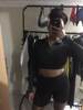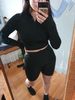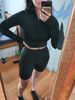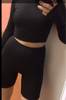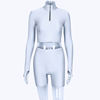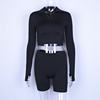 Long Sleeve Zipper High Neck Elastic Sexy Crop Tops And Shorts Two Sets L0214