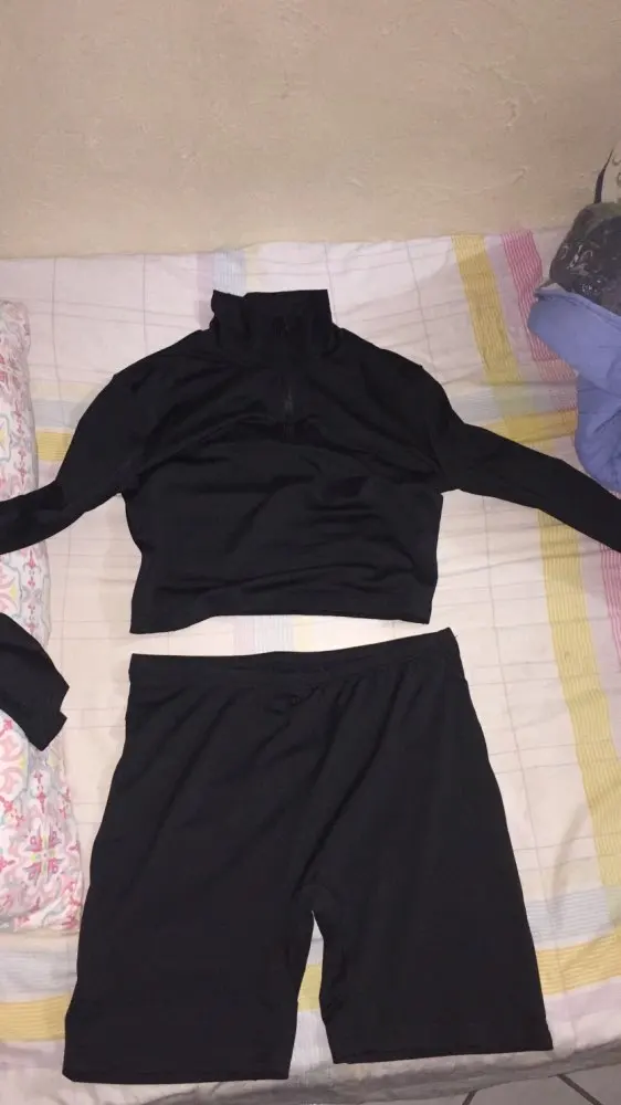 I took M on the parameters of the thigh 91, waist 68, chest 90, height 164. Came well. I would like to denser leggings, but they will then shine through. Sleeves can be shorter. The fabric is not dense. The suit is very light. Quality is good. I did not communicate with the store. It was a little less than a month.