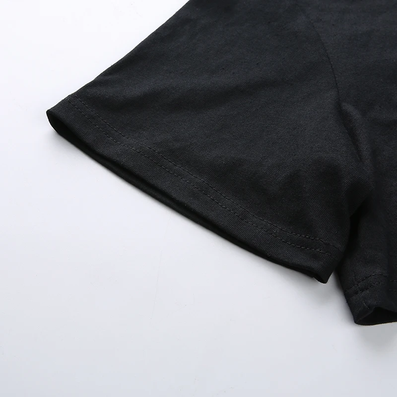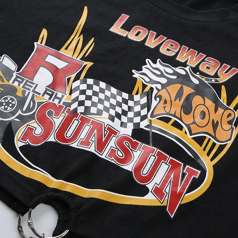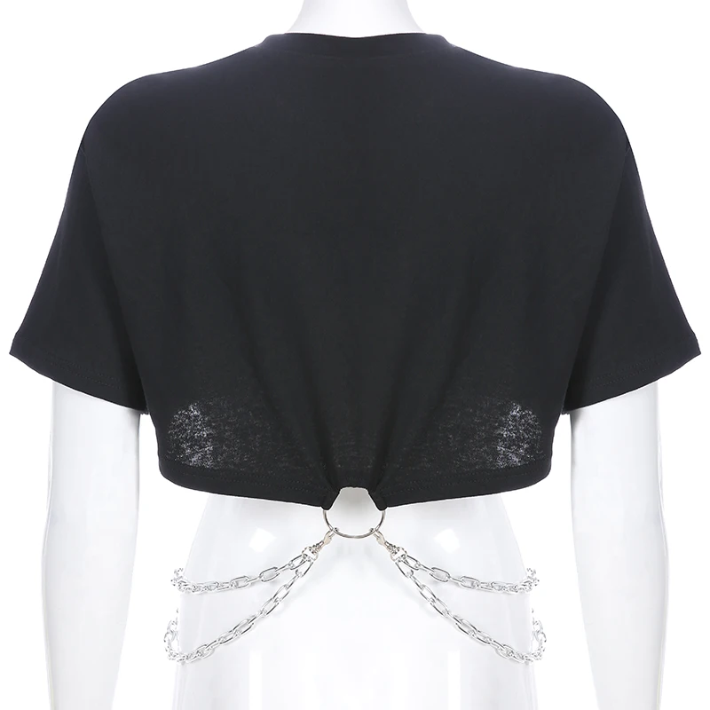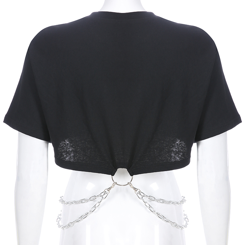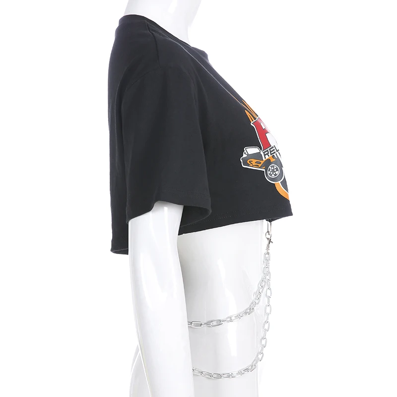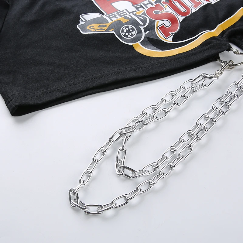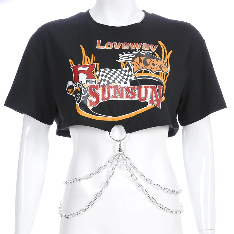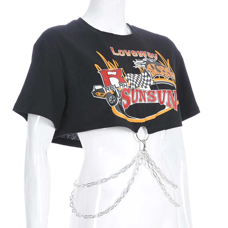 Loveway Printed Crop Top with Chains Korean Punk Short Sleeve Tshirt Streetwear L0065