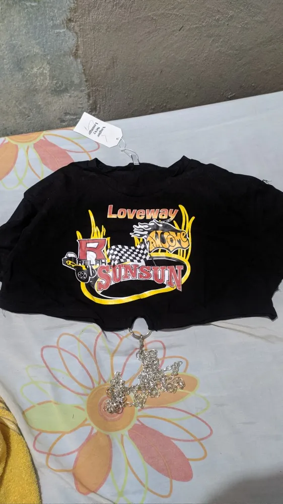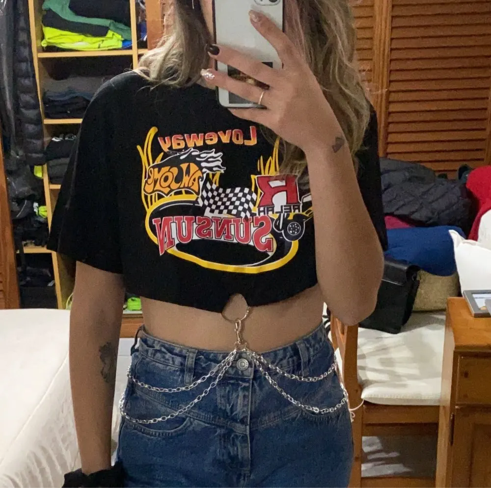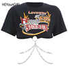 Loveway Printed Crop Top with Chains Korean Punk Short Sleeve Tshirt Streetwear L0065
