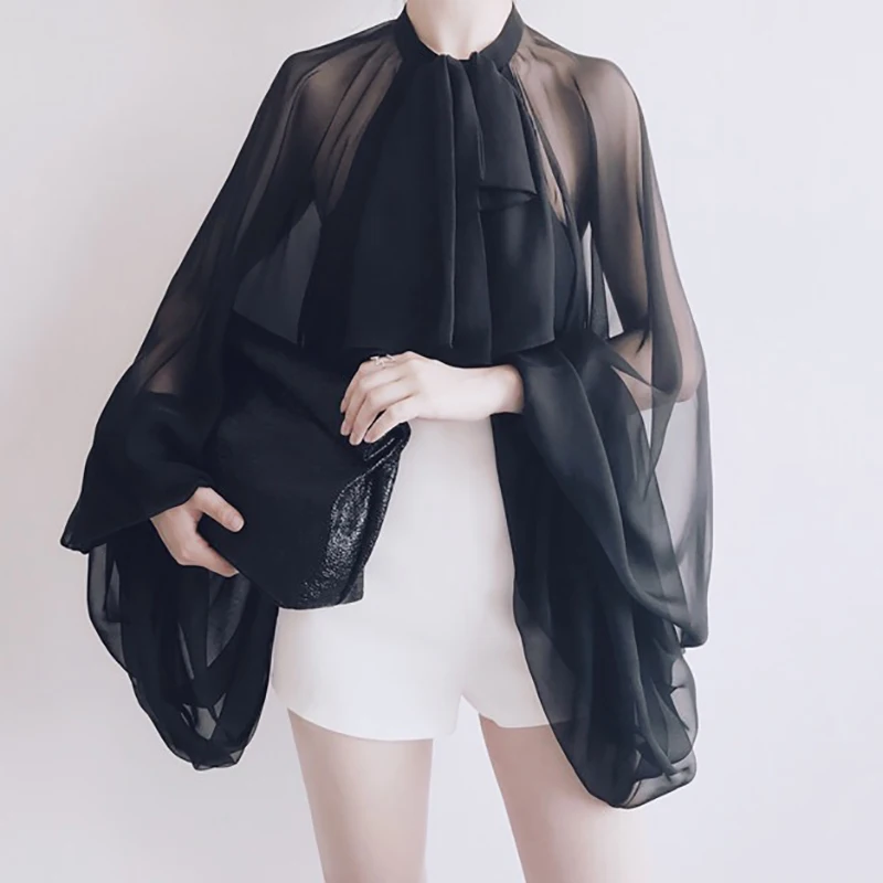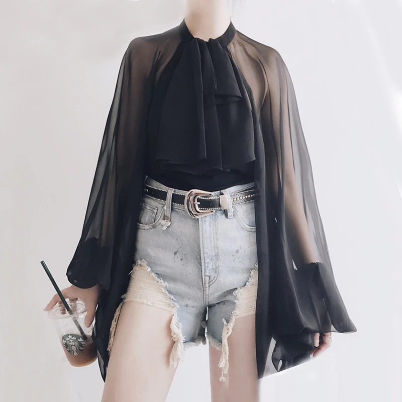 Luxury Bowknot Chiffon Transparent Blouse