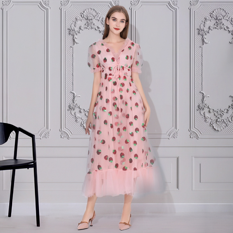 2021 Summer Vintage Maxi Dress Mesh OUT0804