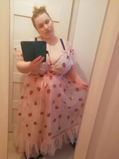 Everything is super!!! Delivery is fast, not more than two weeks. Dress, as in the photo. The grid dimension parameters are the same. I had a big chest, I was afraid I wouldn't fit. But no, everything came up. The volume of the chest is 125, took, 5XL, everything came up. Threads do not stick out, there is no smell. Strawberry Super!