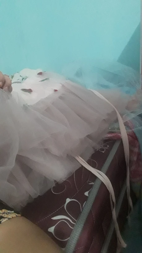 A beautiful dress, as in the presented pictures. The fabric is of course synthetic, but everything is executed qualitatively, all strawberry are reliably sewn and not crumpled In general, order, you will not regret