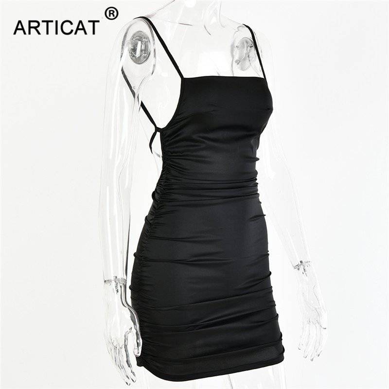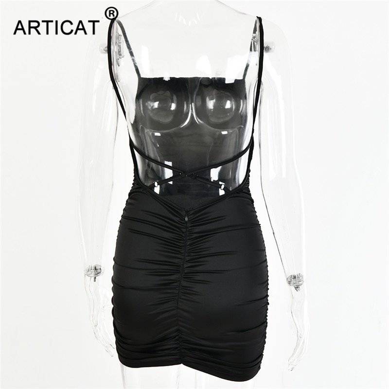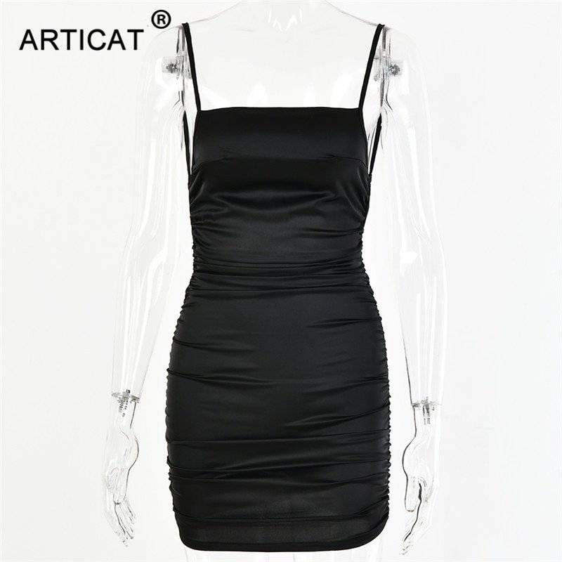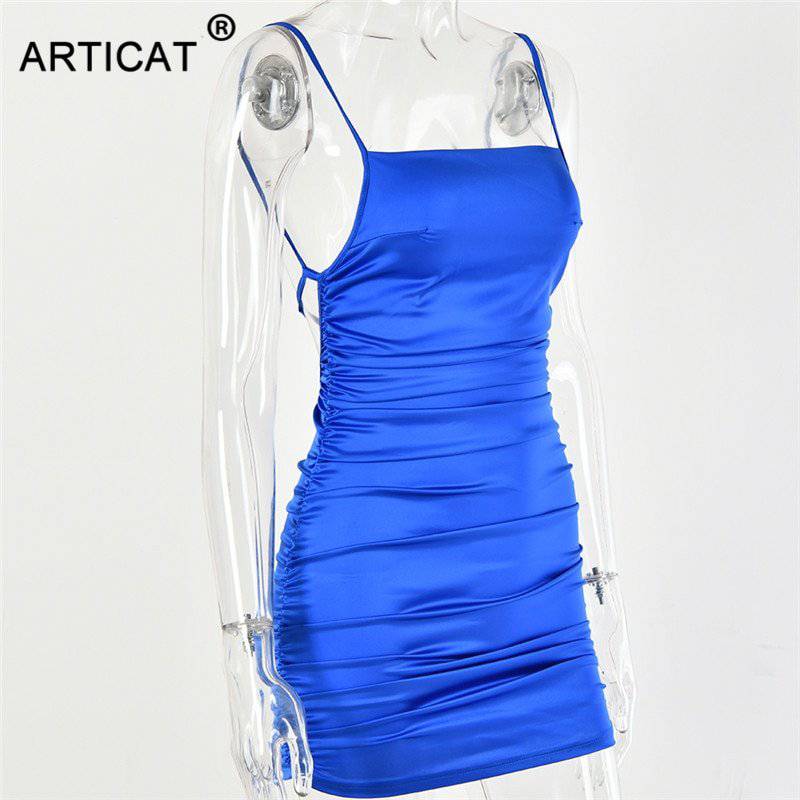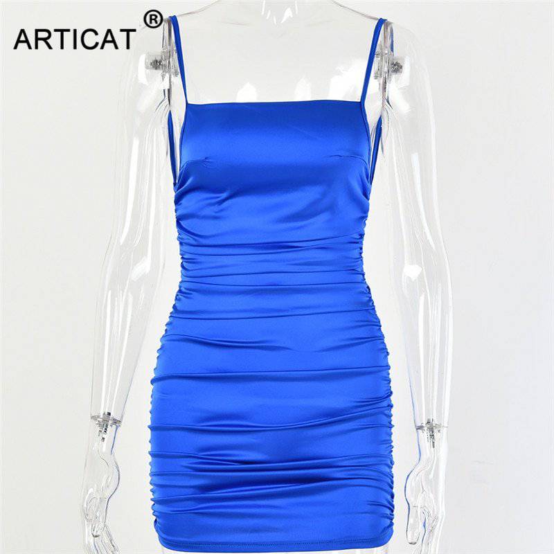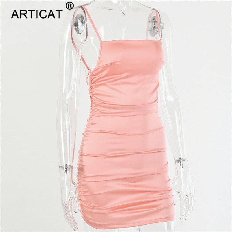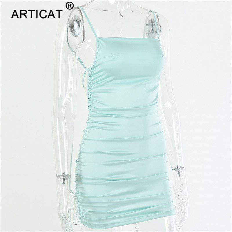 ­Mini Satin Dress Spaghetti Strap Backless Cross Bandage Bodycon Dresses L0085