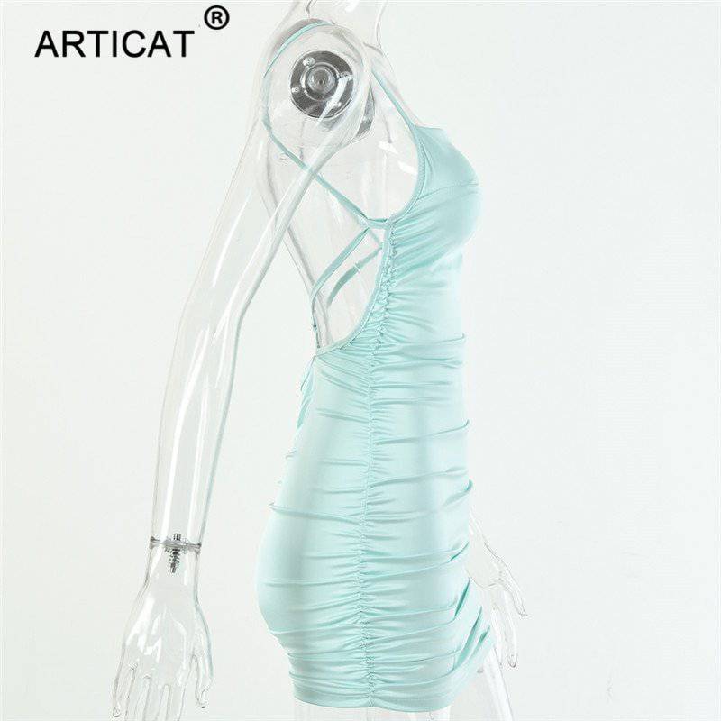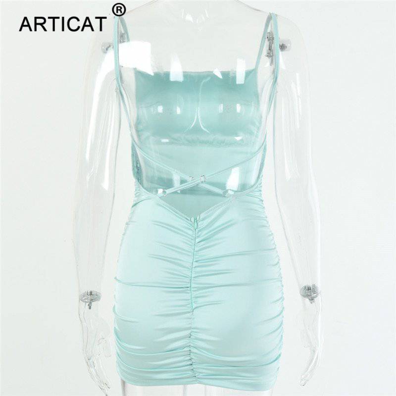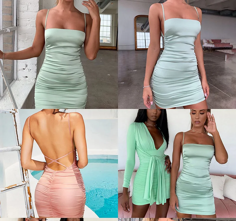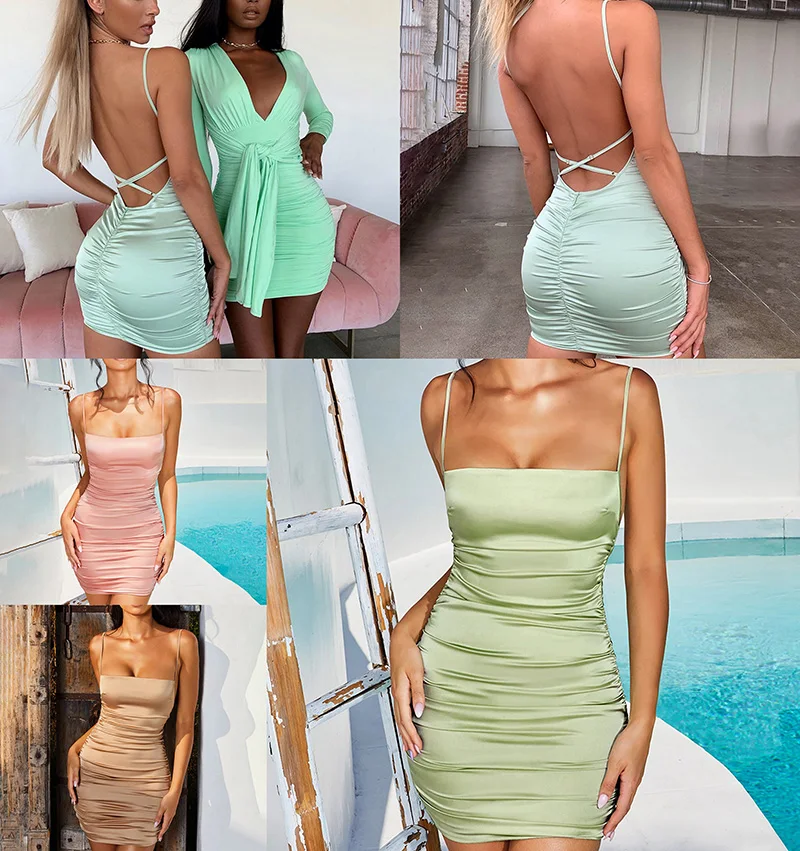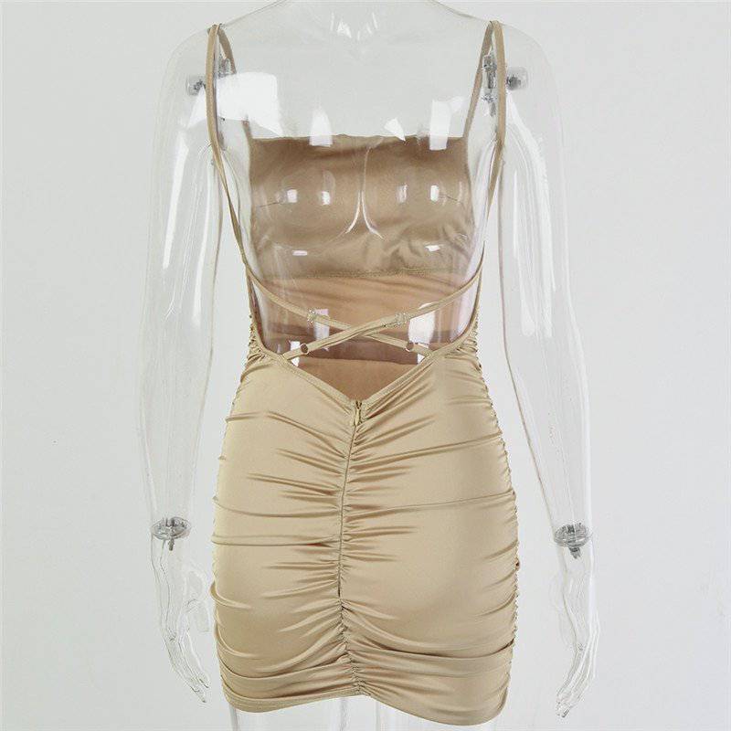 Mini Satin Dress Spaghetti Strap Backless Cross Bandage Bodycon Dresses L0085