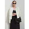Minimalist Short Jacket for Women 2025 Spring Elegant Stereoscopic Flower O-Neck Hook Button Outwear Coat OUT1013