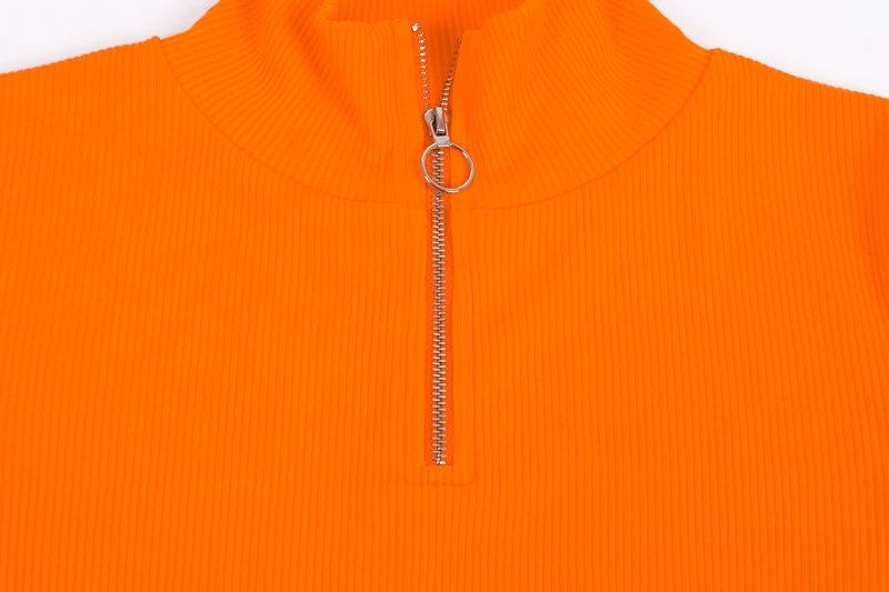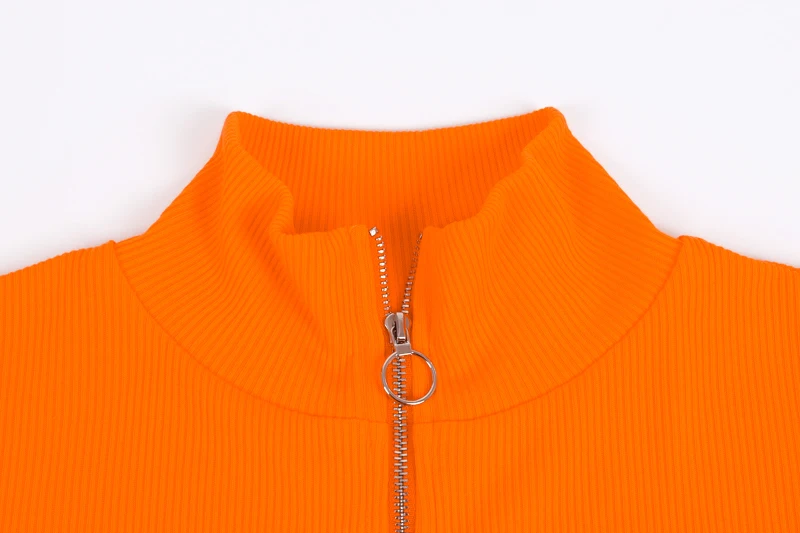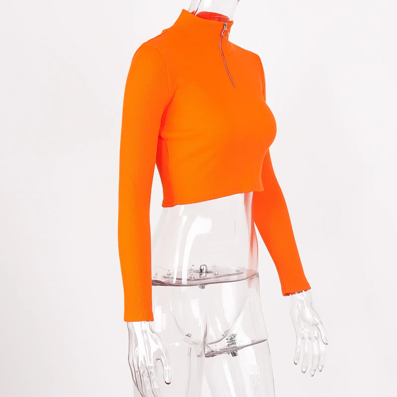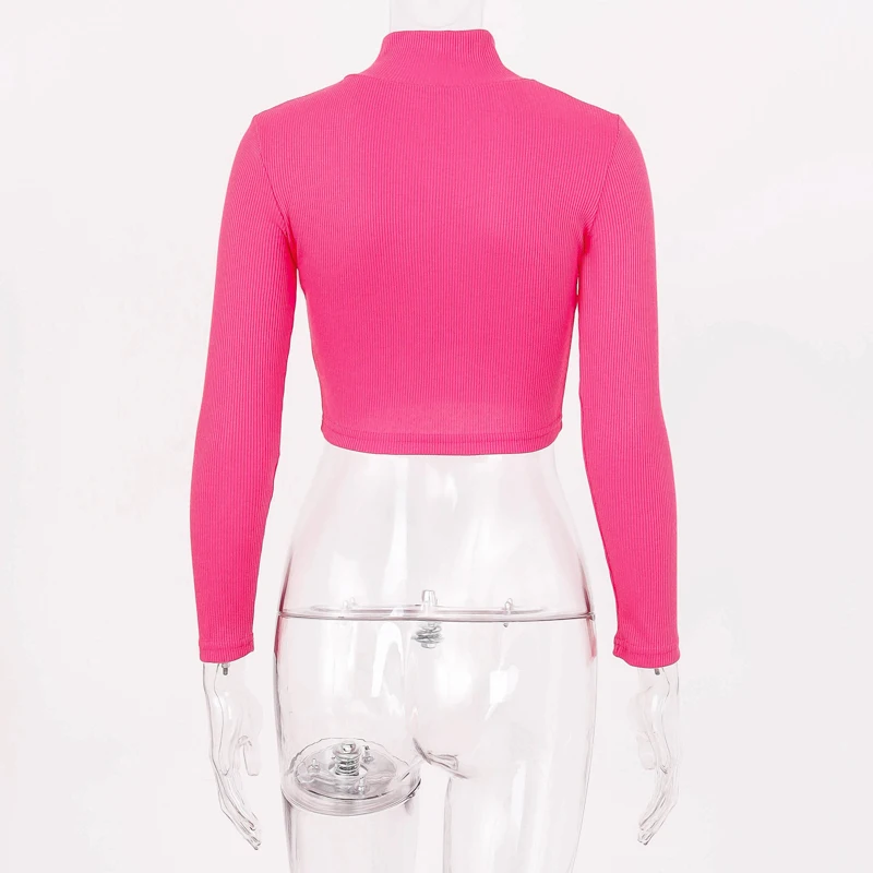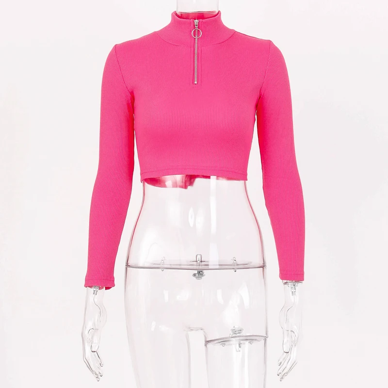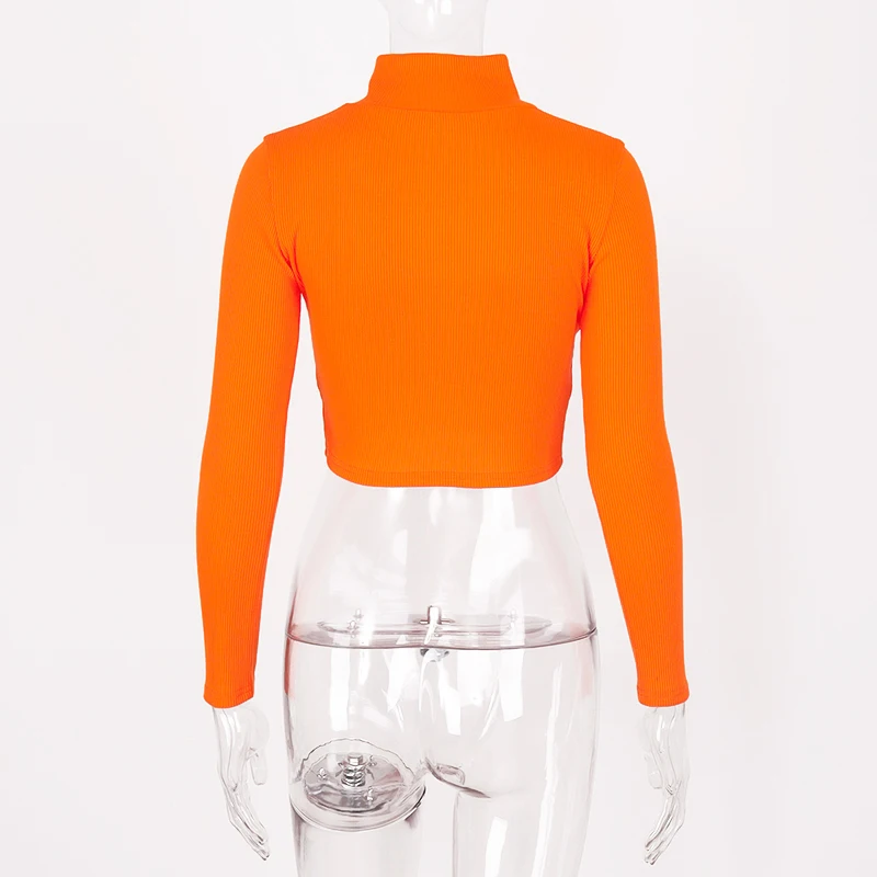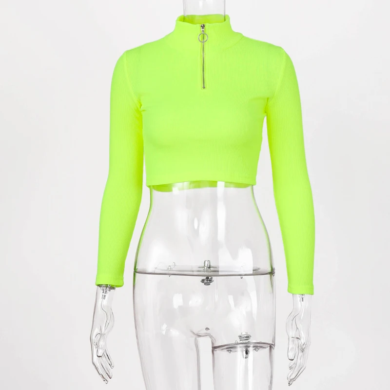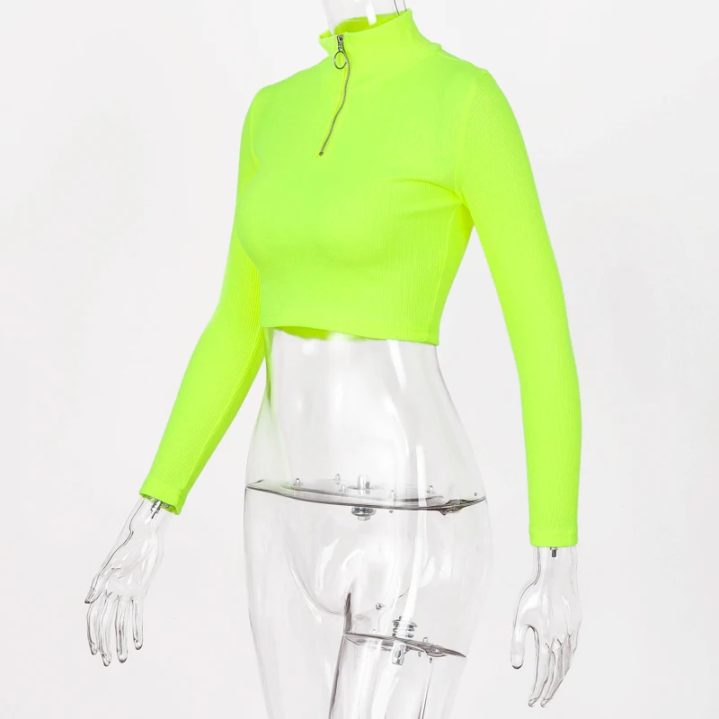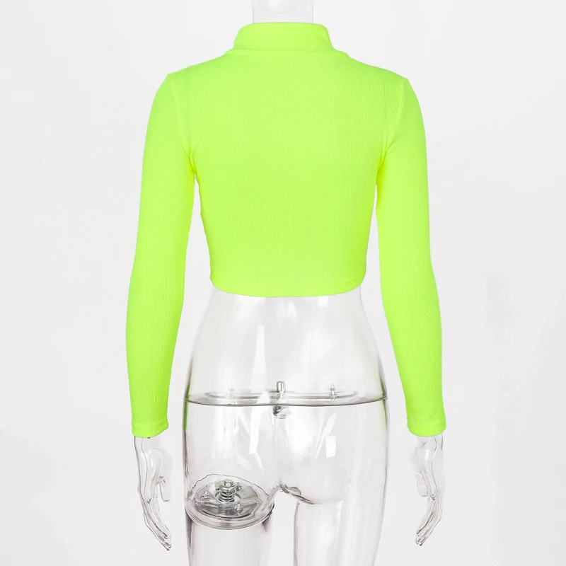 Neon Bodycon Long Sleeve Zipper Patchwork Crop Tops Fashion Outfits Style L0222