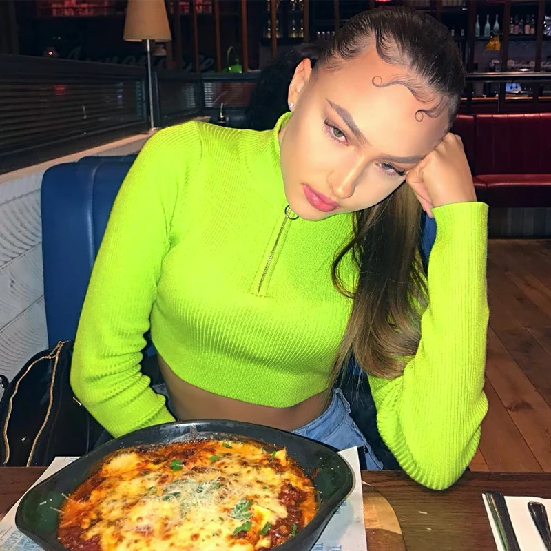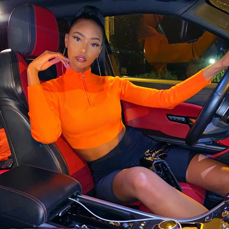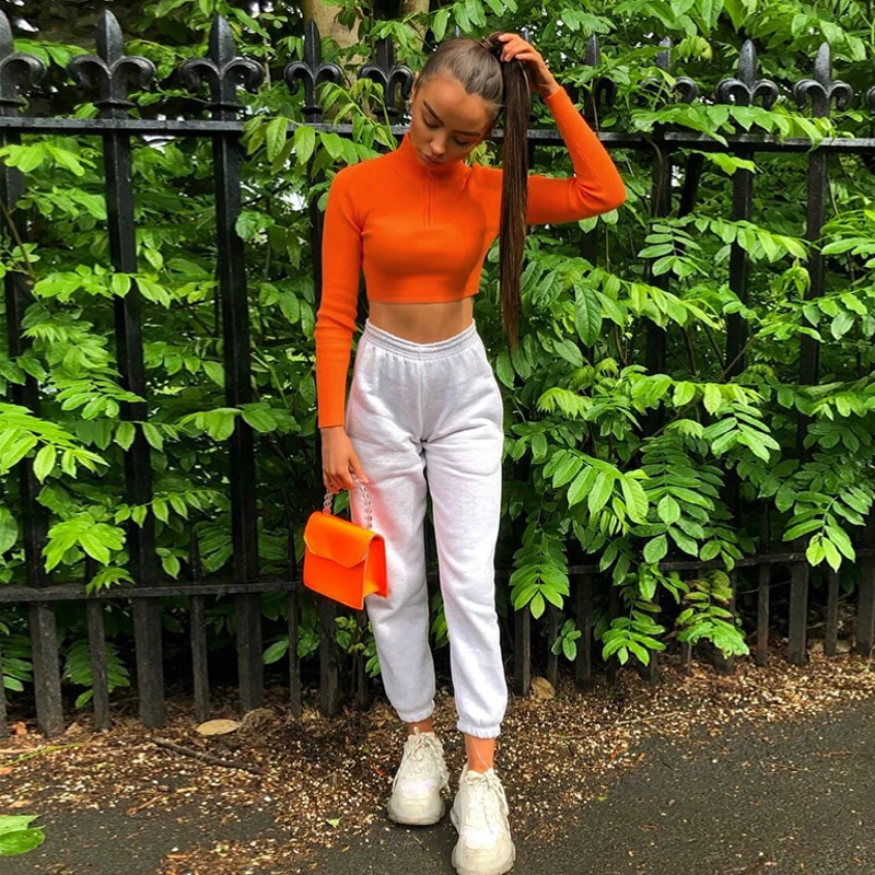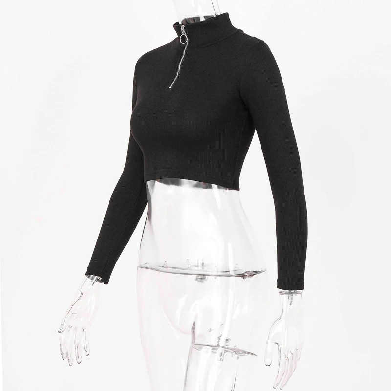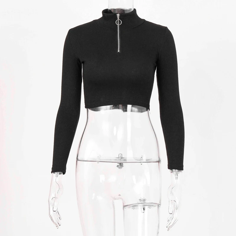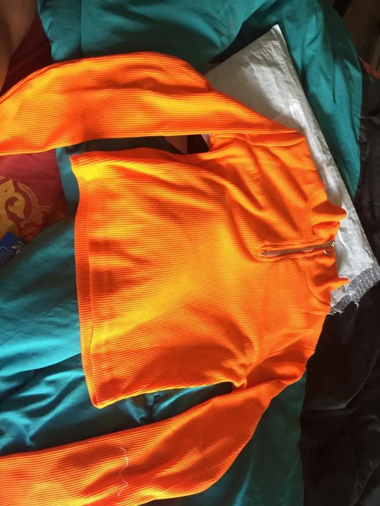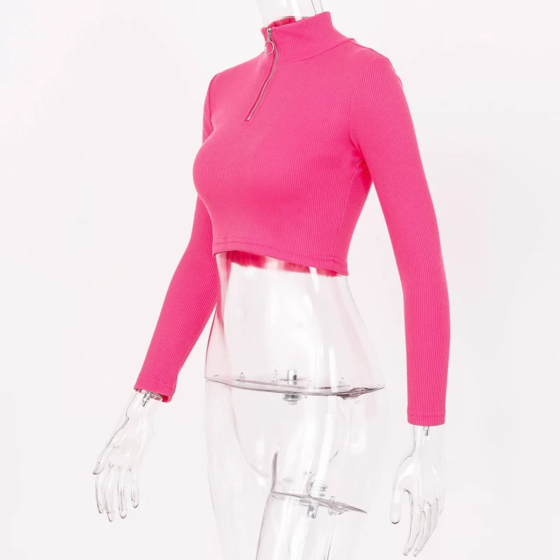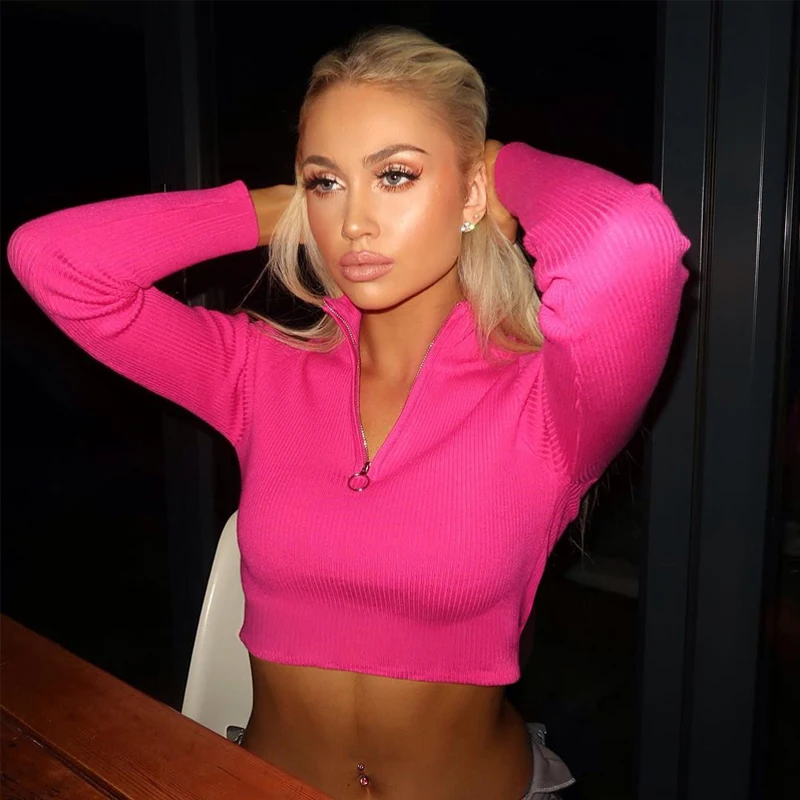 Neon Bodycon Long Sleeve Zipper Patchwork Crop Tops Fashion Outfits Style L0222
