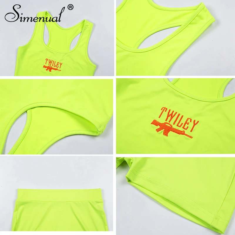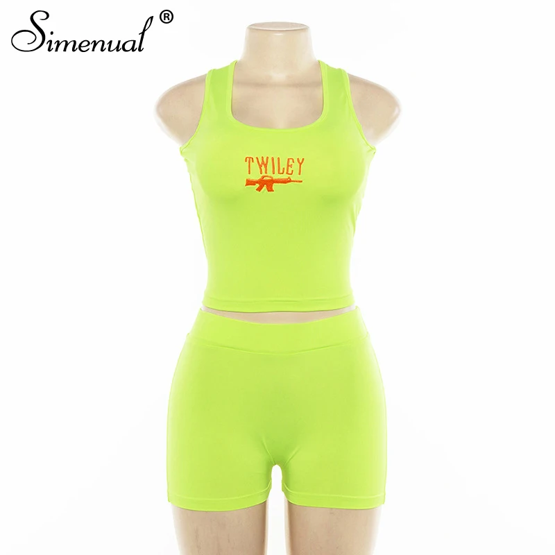 Neon Color Tracksuits Twiley Letter Embroidery 2 Piece Set Casual OG0674