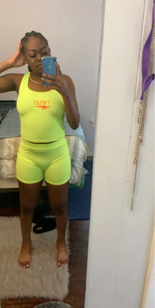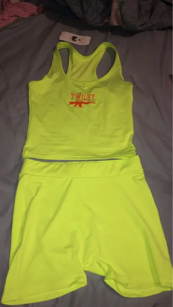 Neon Color Tracksuits Twiley Letter Embroidery 2 Piece Set Casual OG0674