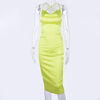 Neon Satin Lace Up Bodycon Midi Dress Elegant Party Outfits OG0014