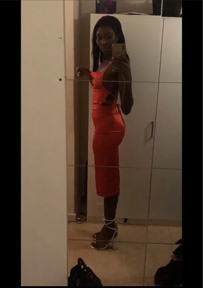 The dress is very accurately depicted in the picture. Sits straight as it should. I wear S, xs., height 174, took M and did not regret it. Not where does not pull, sits perfectly., as if for me sewed. Beautifully emphasizes the ass. The store immediately got in touch, to my request to send as soon as possible, so that the outfit came to the holiday, he reacted positively. To Moscow in 14 days. Thank you