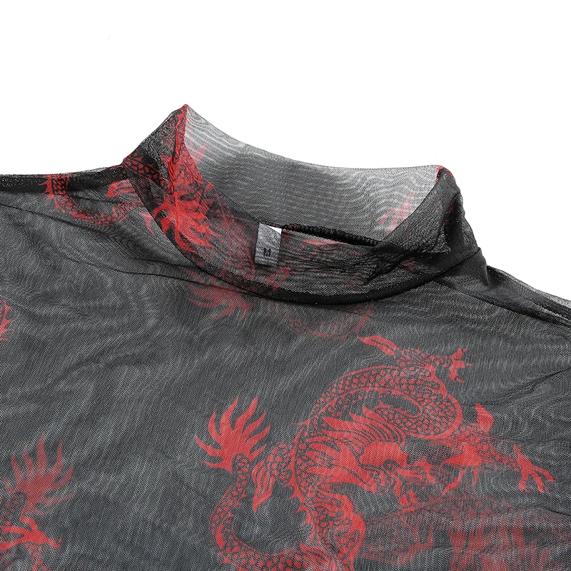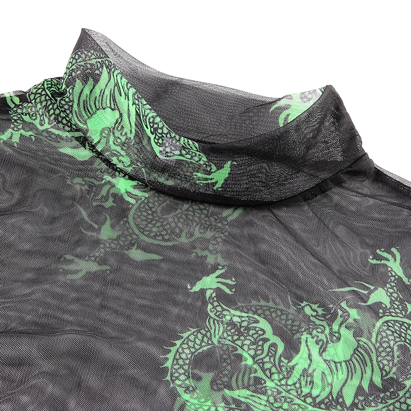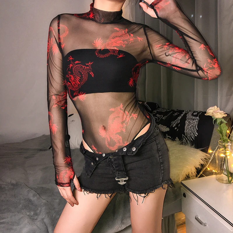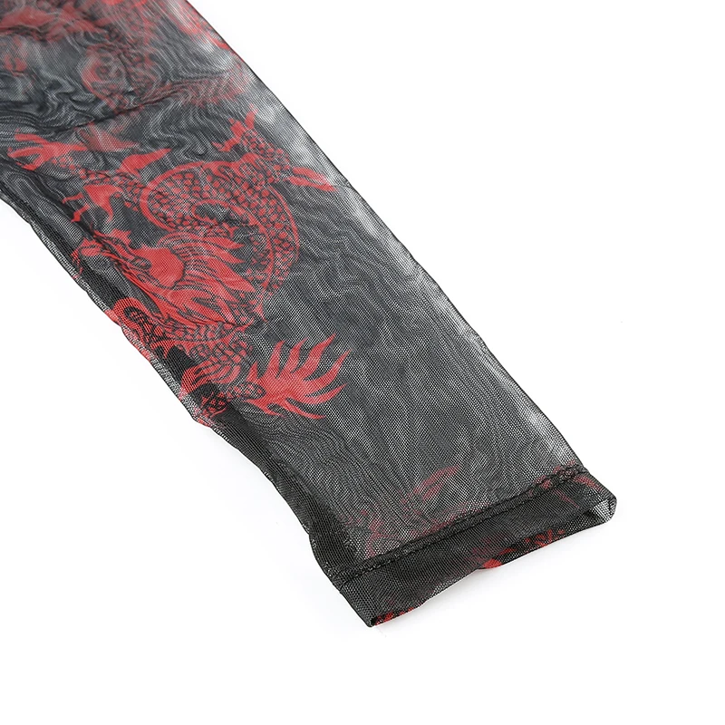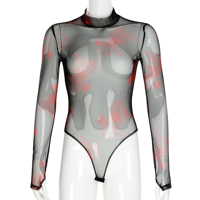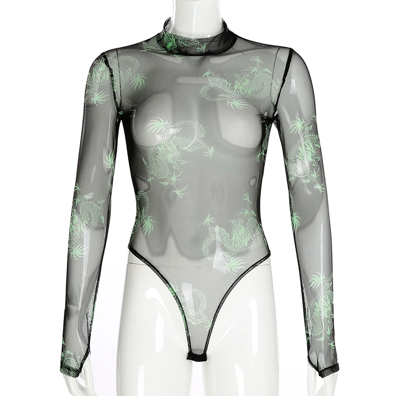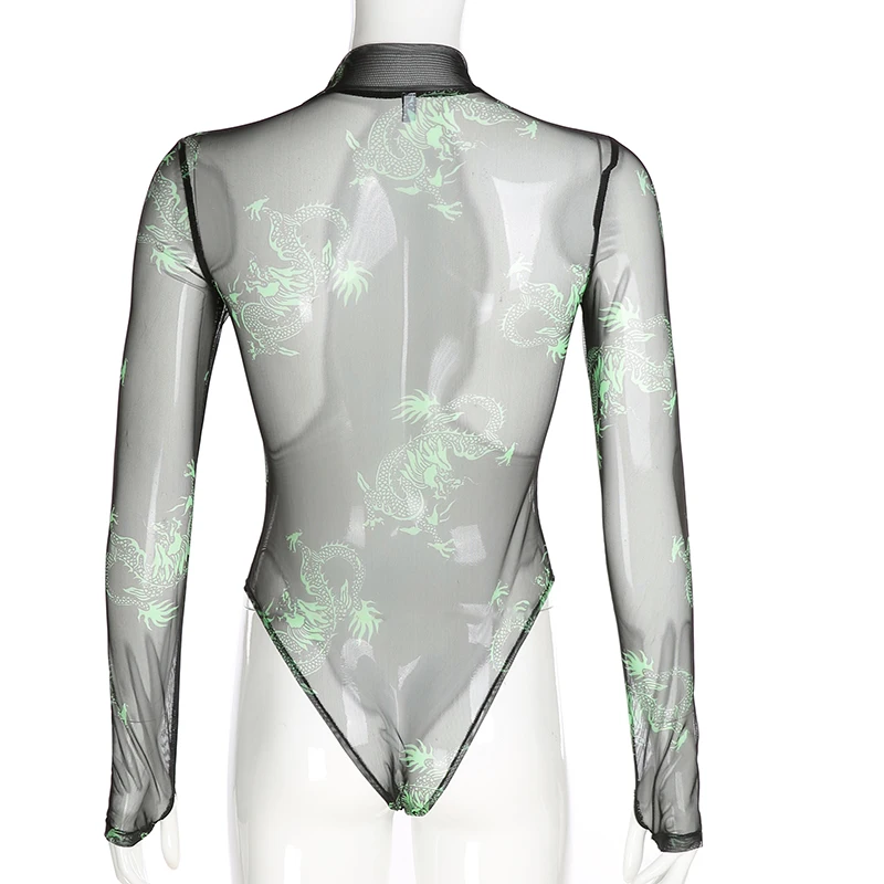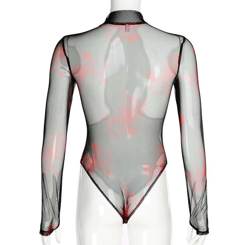 New Arrival Transparent Mesh Bodysuit Dragon Print L0209