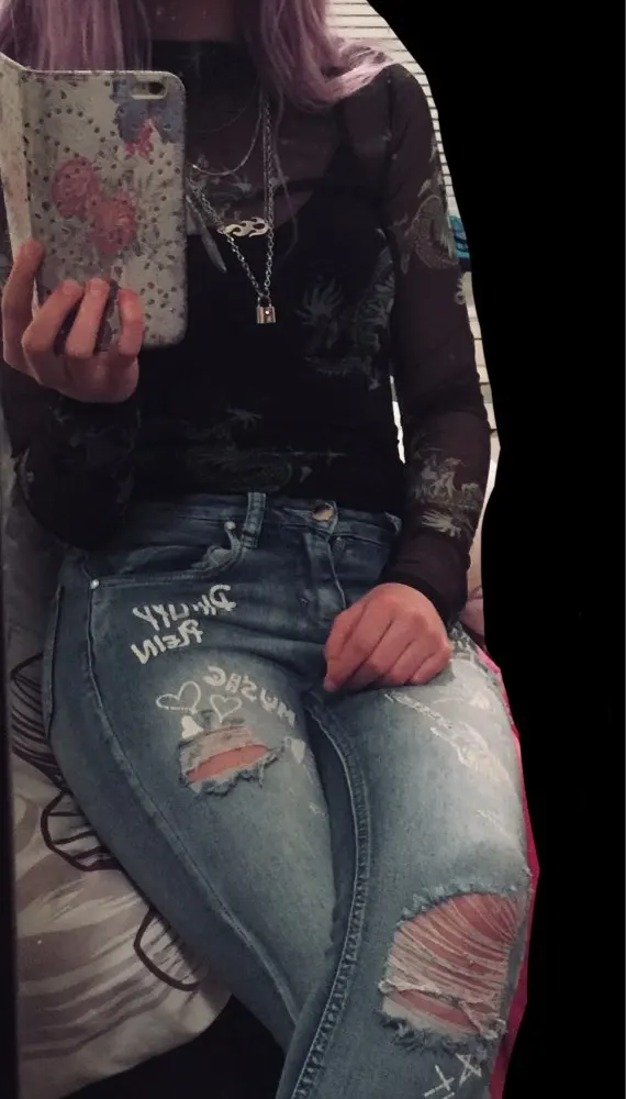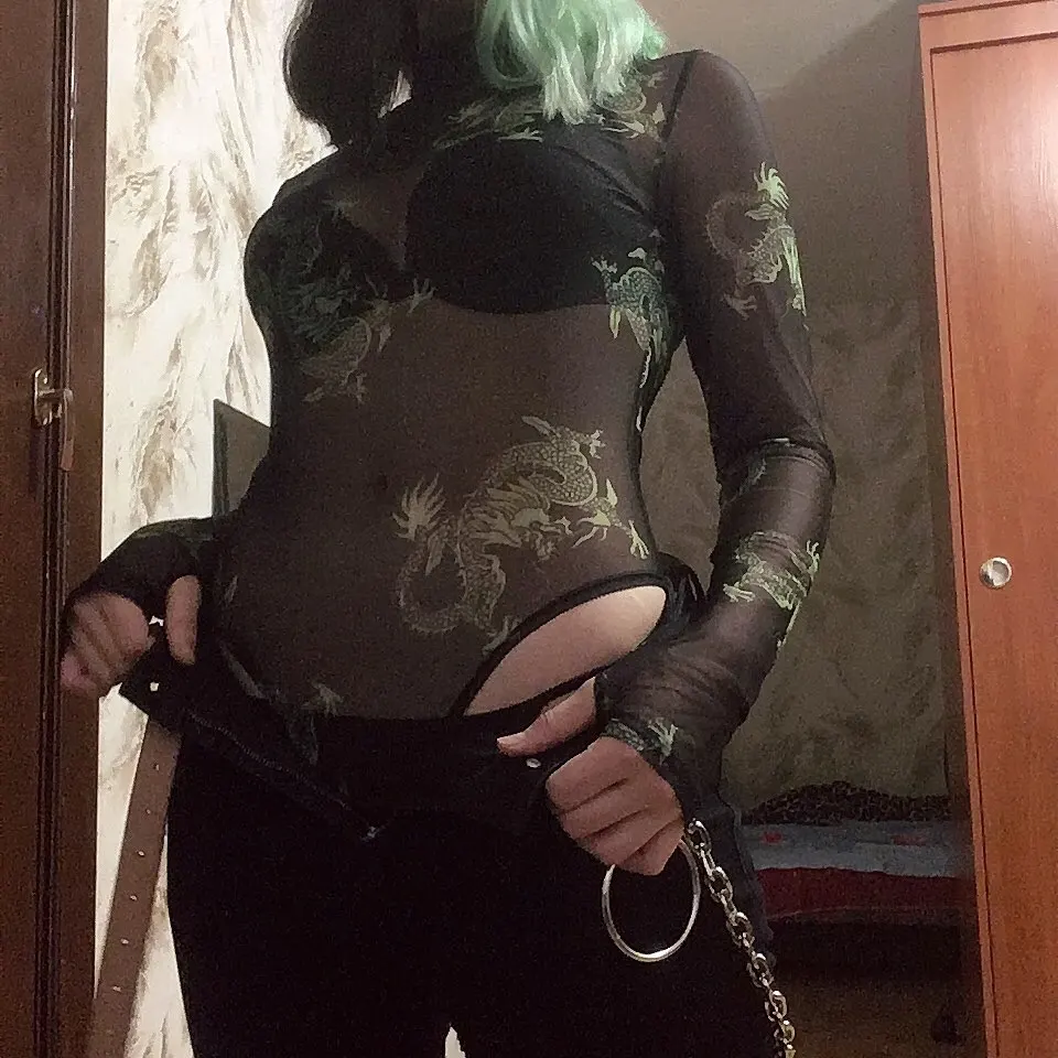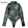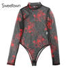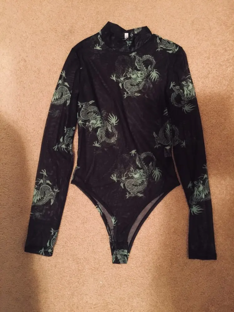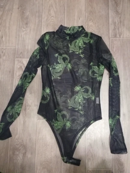 New Arrival Transparent Mesh Bodysuit Dragon Print L0209